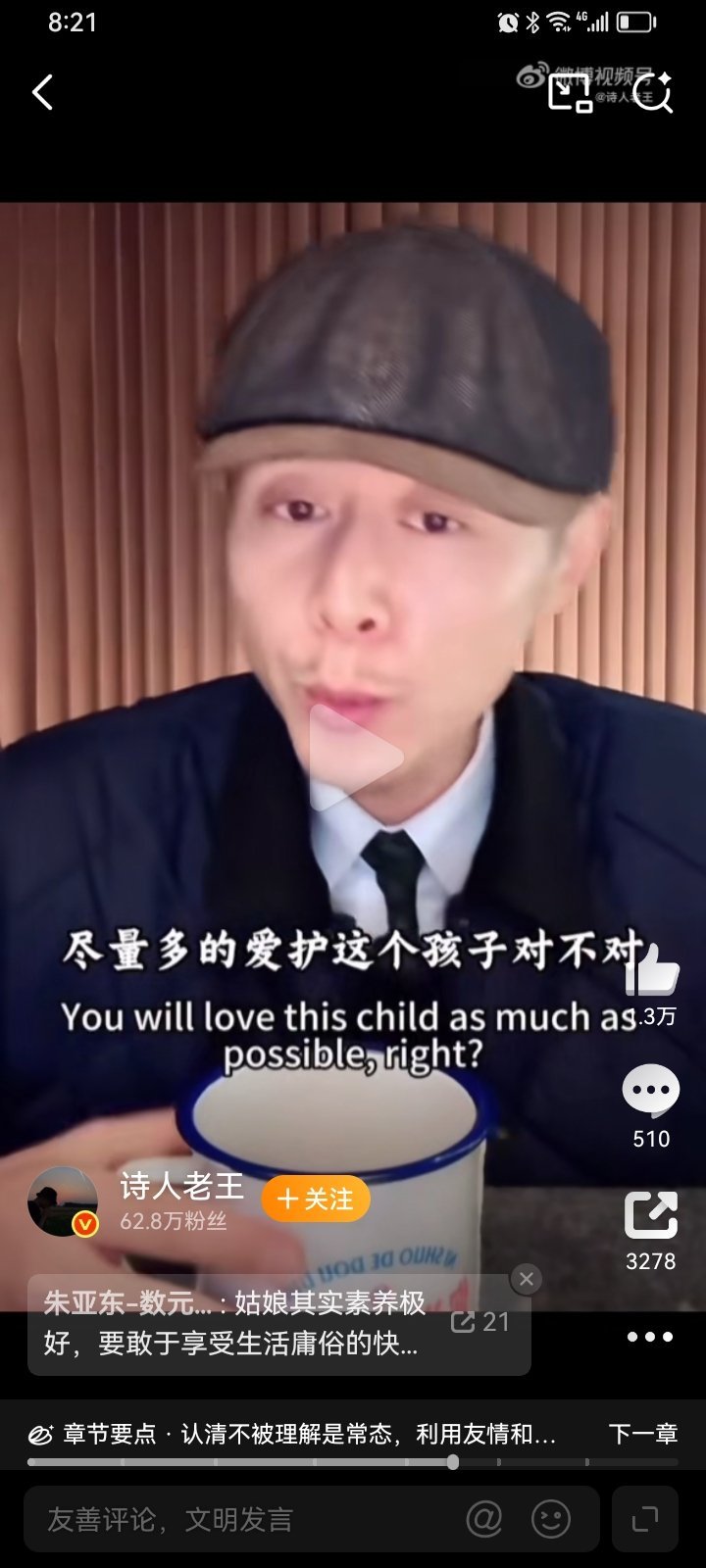 再也不敢在小孩写作业时候贬低他了,免得以后他像我一样拖延,觉得自己配不上好的人。亲情的损失可以通过爱情,友情来弥补,因为这些都叫做与社会的关系。自己受过伤,就会对小孩特别多夸奖,独爱。再也不敢在小孩写作业时候贬低他了,免得以后他像我一样拖延,觉得自己配不上好的人。亲情的损失可以通过爱情,友情来弥补,因为这些都叫做与社会的关系。自己受过伤,就会对小孩特别多夸奖,独爱。过去发生的事已经发生了,不能改变就别去想,生活是跑马拉松,不能总回头看,会摔跤。往前看后面新的人会覆盖以前的事。找到自己真心喜欢的事情,就会爆发专注持续的生命力。