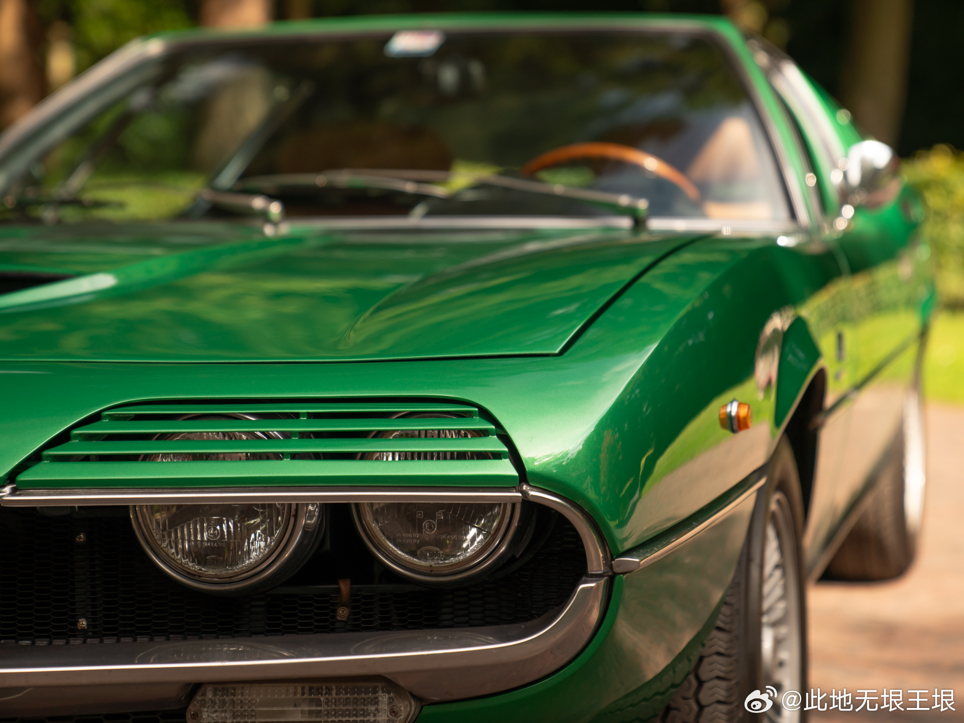 大V聊车 1967年的蒙特利尔世博会上,阿尔法罗密欧展出了这款有点像兰博基尼的世博会同名车型,当时观众的反响很积极。时间来到70年代,阿尔法罗密欧真的将蒙特利尔投产了。最初的展车由博通设计,车身线条平直硬朗,覆盖着平坦的板材,有着大量的镀铬装饰件,车头角度尖锐,还有着诸多独特细节,比如车门后面的散热口、发动机盖上倒三角进气口,以及气动半圆叶片形的头灯罩等。车内饰采用了浅棕色皮革搭配黑色仪表台的组合,仪表由2个巨大的炮筒组成,中控台布置了整齐的按钮开关,巨大的3辐木制方向盘,5速手动变速箱。1967年的展车配备了1.6升4缸发动机,而量产后搭载了Biscione系列排量2.6升V8发动机,最大功率230马力,阿尔法罗密欧的5速手动变速箱已不能承受,只能换装采埃孚的产品。由于整备质量只有1200公斤,所以0-100公里/小时加速时间7.4秒,最高时速超过220公里/小时。这样的性能在那个年代还是相当有竞争力的,与同时期的大多数跑车持平,或是略有优势。阿尔法罗密欧蒙特利尔在1971年-1977年的生产周期内,由于产能有限,共制造了3925辆,留存至今还能品相不错的在收藏界有着颇高价值。
