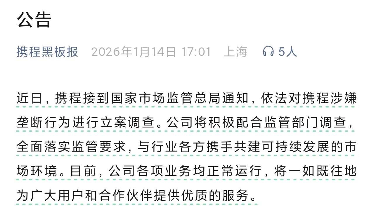 携程店大欺客了?被反垄断参考之前阿里和美团的例子,估计要被罚100多亿。72%的市占率,携程毛利81%,4000亿市值,去年前三季度290亿利润。强制改价、强制“二选一”、高额佣金、流量屏蔽、降权、大数据杀熟。去年8月,被贵州省市场监督管理局集中约谈;去年9月,被郑州市市场监管局单独约谈,并责令整改。看来是,早有前兆,屡教不改,这次被查看很多人评论是大快人心呀。