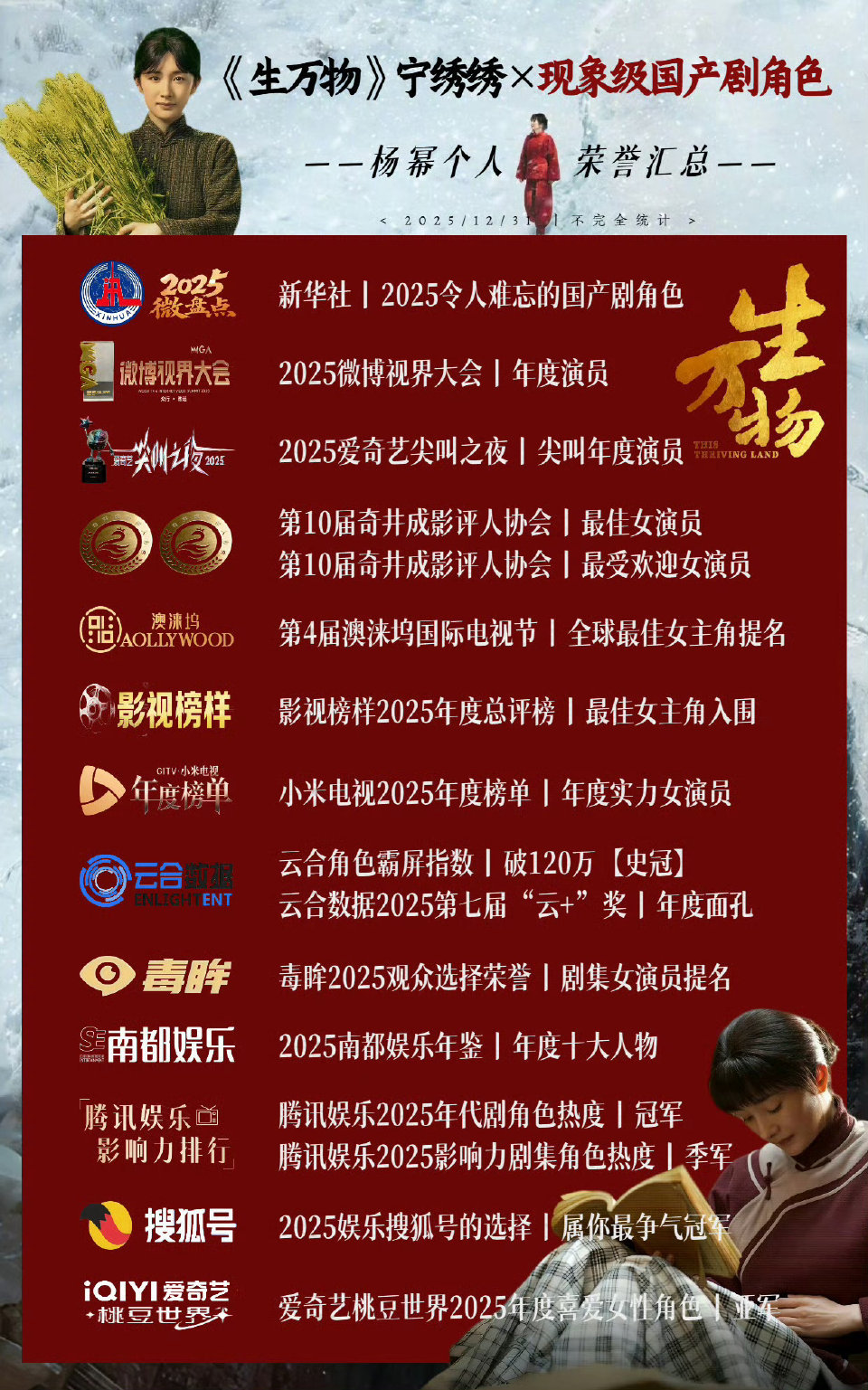 侯鸿亮说生万物2025年综合指数最高实至名归!这部拿下央八收视破4、抖音播放量100亿的年代史诗,用鲁南大地的烟火与风骨征服观众,20年沉淀的好故事果然经得起时光检验侯鸿亮认证生万物2025综合指数最高杨幂穿Prada的黑长直女神