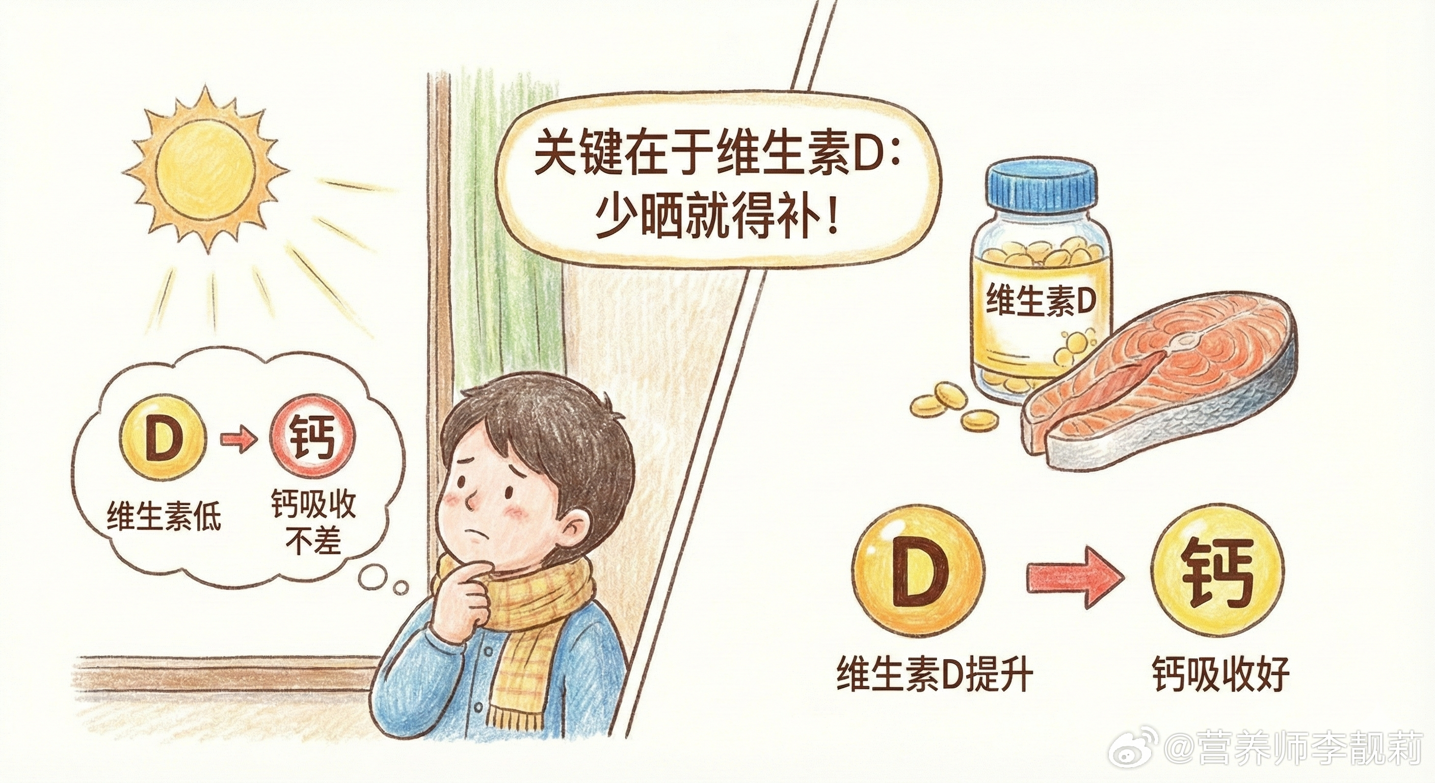冬天骨头真的会变脆么男性健康必修课我的防护手册 ✨📌冬天骨头更容易受伤,是骨密度真的下降了吗?骨密度不会因为一两个月的低温就“突然下降到让你变脆”,骨量变化通常是以“年”为尺度的慢变量。冬天更容易受伤,更多是“外因叠加”:活动量下降导致肌力、平衡和反应变差;穿得厚、地面湿滑让跌倒更常见;加上如果本来就有骨量偏低,一摔就更容易骨折。所以与其说“冬天骨头变脆”,不如说冬天让“跌倒概率↑ + 承受冲击能力↓”,风险就被放大了。💪实用做法很简单:每周至少 2 次力量训练(下肢、髋部、核心优先),平时每天都要有一点负重活动(快走、爬楼、提轻物),比“只补钙”更能真正降低骨折风险。✨📌冬季日照减少,会如何影响钙的吸收和骨骼健康?关键在维生素D。维生素D能提高肠道对钙的吸收效率,日照少会让体内维D水平更容易不足,结果就是:你钙吃得不少,但“吸收和利用”打折。对普通人最实用的逻辑是:冬天想护骨,先把维D这块补齐——能晒太阳就晒(前提是安全、不过度),很难晒到的话就通过饮食(如脂肪较高的鱼类、强化乳制品)或补充剂把维D兜住。或者我会推荐服用维生素D补充剂。✨📌为什么冬季老年人骨折风险更高,该如何针对性防护?老年人冬季风险高,核心不是温度本身,而是三件事一起发生:骨量本来就低(尤其是骨质疏松人群),肌少症/力量下降更明显,冬天更不爱动;再加上跌倒环境更差(地滑、衣物束缚、起夜、血压波动)。防护要“分层做”:① 营养上把蛋白质吃够(每餐都有优质蛋白,别只喝粥吃面)、钙和维D稳定摄入;② 运动上以“抗阻+平衡”为主(坐站训练、靠墙深蹲、提踵、单脚站等安全版本);③居家防跌倒细节要落地:卫生间和走廊夜灯、地毯防滑、常用物品放到伸手可及处、起夜路径清空、鞋子防滑、必要时用助行器。对已经确诊骨质疏松或有过跌倒史的人,冬天更建议尽快和医生评估是否需要药物干预,因为“骨折风险”这类高危人群,光靠生活方式可能不够。
