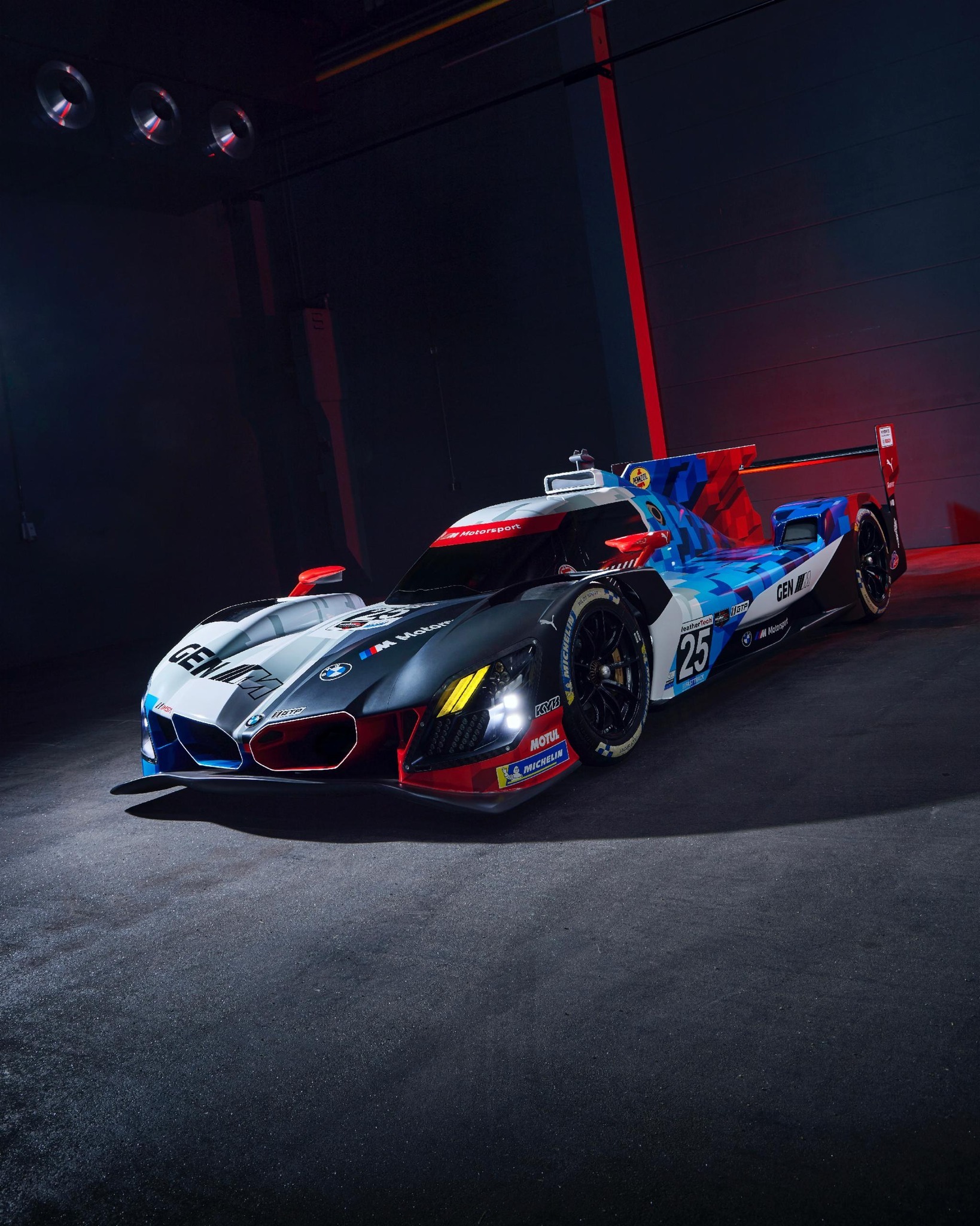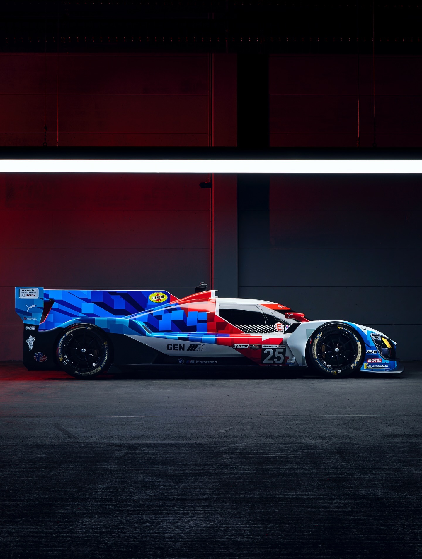 2026赛季宝马IMSA涂装发布,M Hybrid V8空动EVO版本和去年的像素涂装区别不大,照片这个是模型车,真车预计会保留一侧裸碳的设计戴通纳24小时耐力赛