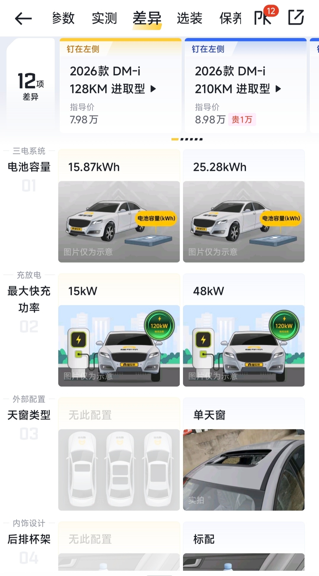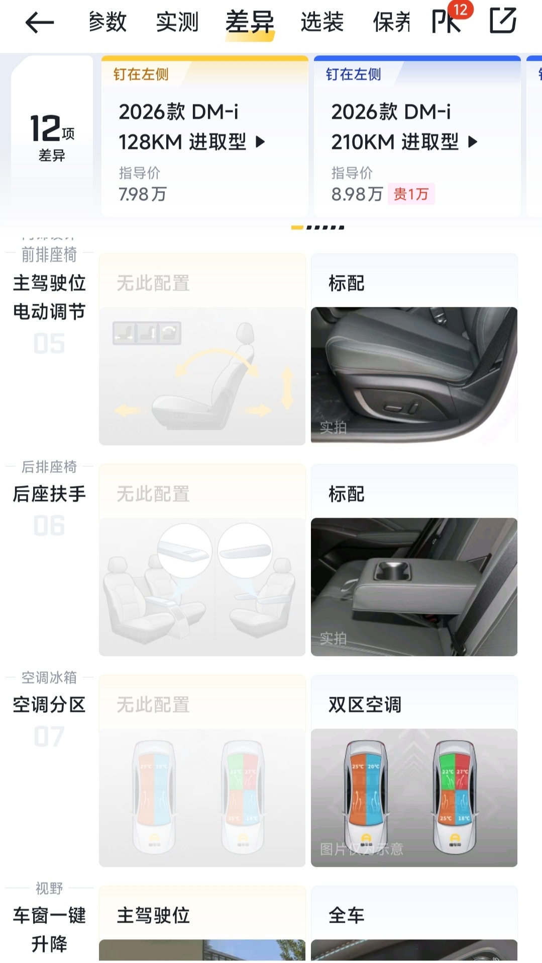 秦家族210KM大电池DMi来了比亚迪的新款秦plus营销做得也太烂了,虽说这次新出大电池版本是卖点,但也好歹提一下配置升级吧。首先2025年9月新出的128km进取型卖7.98万,相对2025年2月上的55km领先型卖7.98万,配置几乎对齐情况下,几乎白送了73km的CLTC续航已经非常加量不加价了。2026年1月新出的210km进取型卖8.98万,较老款加了82km的CLTC续航,乍一听贵一万有点不值吧?但是翻开配置表一看,这俩进取型还不一样,新款多了电动天窗,一键升降车窗,后视镜折叠,前排电调座椅,后排扶手和杯架,分区空调等一堆配置。这些配置加起来本身也要小1万了,叠加续航的升级,1万的价差还是很值的。所以这车还真不是字面上看出来的傻堆电池出来的,配置性价比的提升也该好好讲讲才行。大v聊车比亚迪发布会