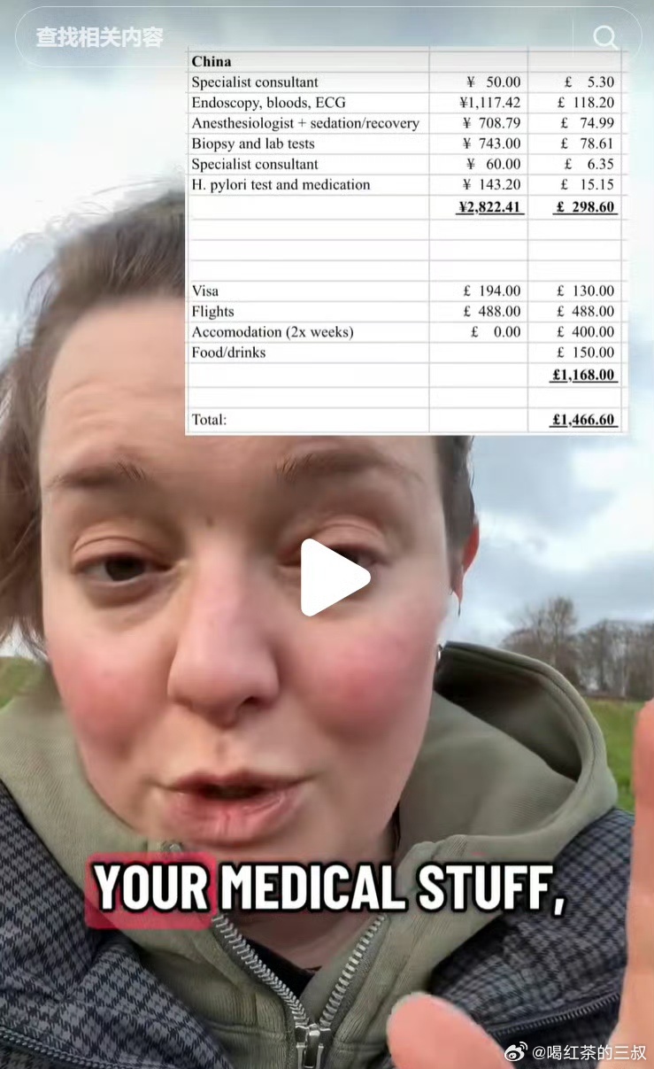 这个老外说(图1) ,到中国看病,来回飞机票加医疗费,也比英国便宜。图2,她的医疗费用是300磅,医生挂号费(药事服务费5.3磅,50人民币)显然她很聪明,没走特需(或国际部)就是普通门诊,副主任或主治看的。我再补充:只要你预交费,完全没必要去特需或者国际部,国内大部分医生看到自费病人,都很客气。省钱、一样看病。还有省钱办法,直接飞浙江来看病,杭州或者地市三甲,走普通诊疗看普通毛病,完全没问题。浙江三甲医院收费是全国最便宜的(图3,浙江是430元),浙江年轻医生,最差也是规培硕士,学历水平还行的,而且不会杀老外,热情但不会献媚。
