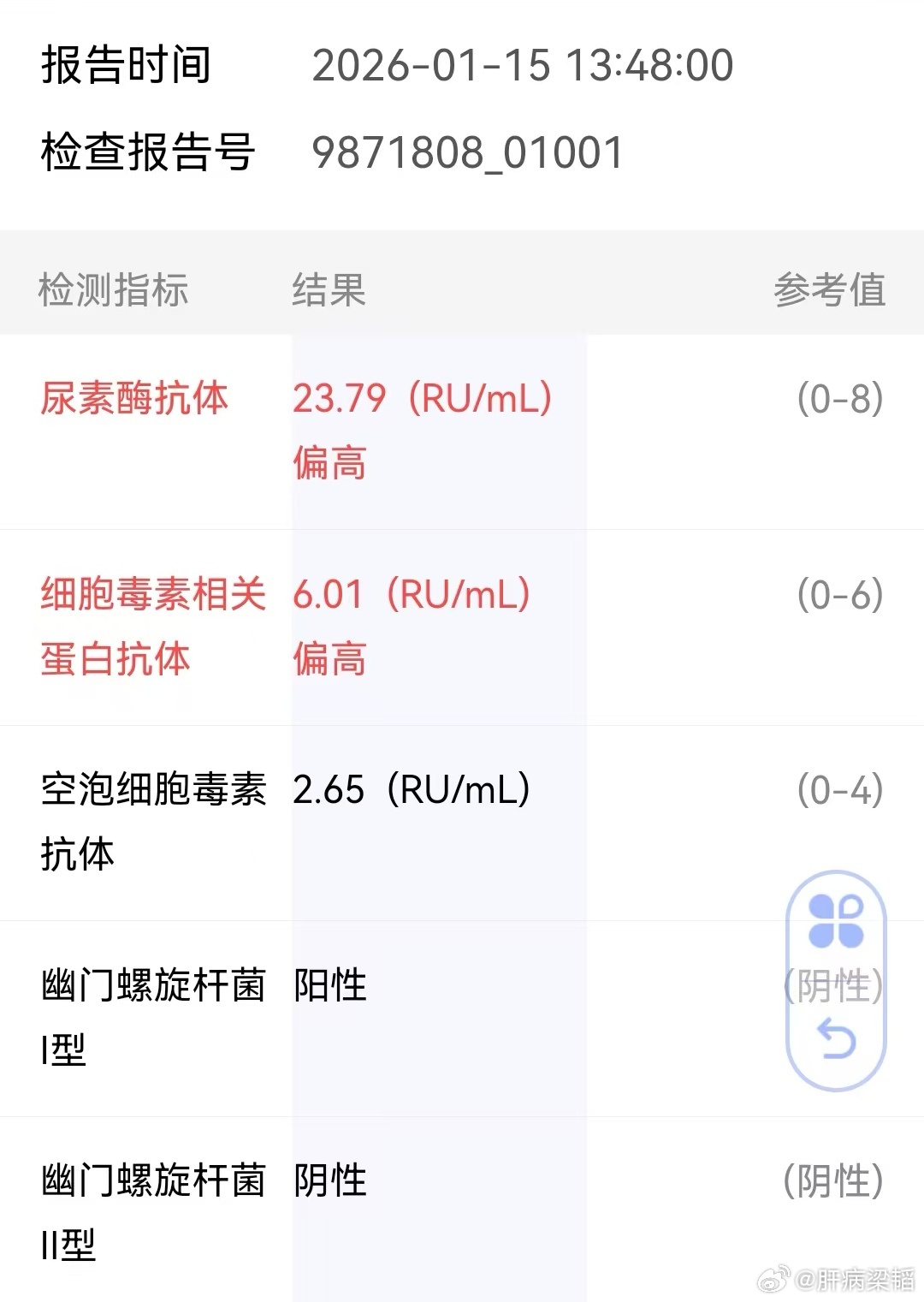 幽门螺杆菌I型阳性,且尿素酶抗体、细胞毒素相关蛋白抗体指标偏高,提示存在幽门螺杆菌(毒力较强的I型)感染。1. 建议治疗的情况:有上腹不适、胃痛、反酸、嗳气等消化道症状;有慢性胃炎、消化性溃疡、胃黏膜萎缩/肠化,或有胃癌家族史;计划长期服用非甾体抗炎药(如阿司匹林)。2. 可评估后决定的情况:无任何症状、无基础胃病且无胃癌家族史,可综合评估后,决定是否行根除治疗(I型幽门螺杆菌毒力较强,多建议积极处理)。