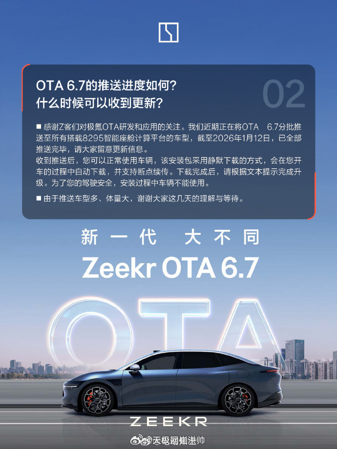 极氪零距离 | 你问我答(20260113)里面提到了大家比较关心:还能享受到极氪购置税补贴么?OTA 6.7的推送进度如何?什么时候可以收到更新?等问题极氪极氪9X新能源汽车
