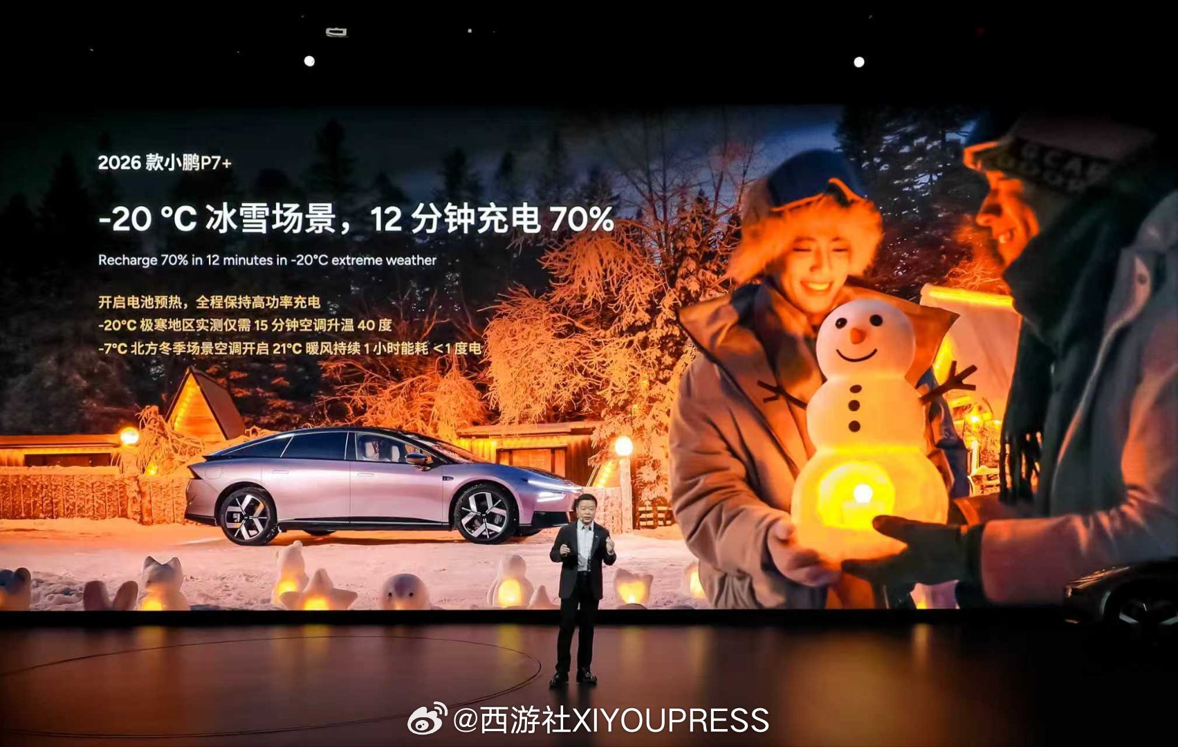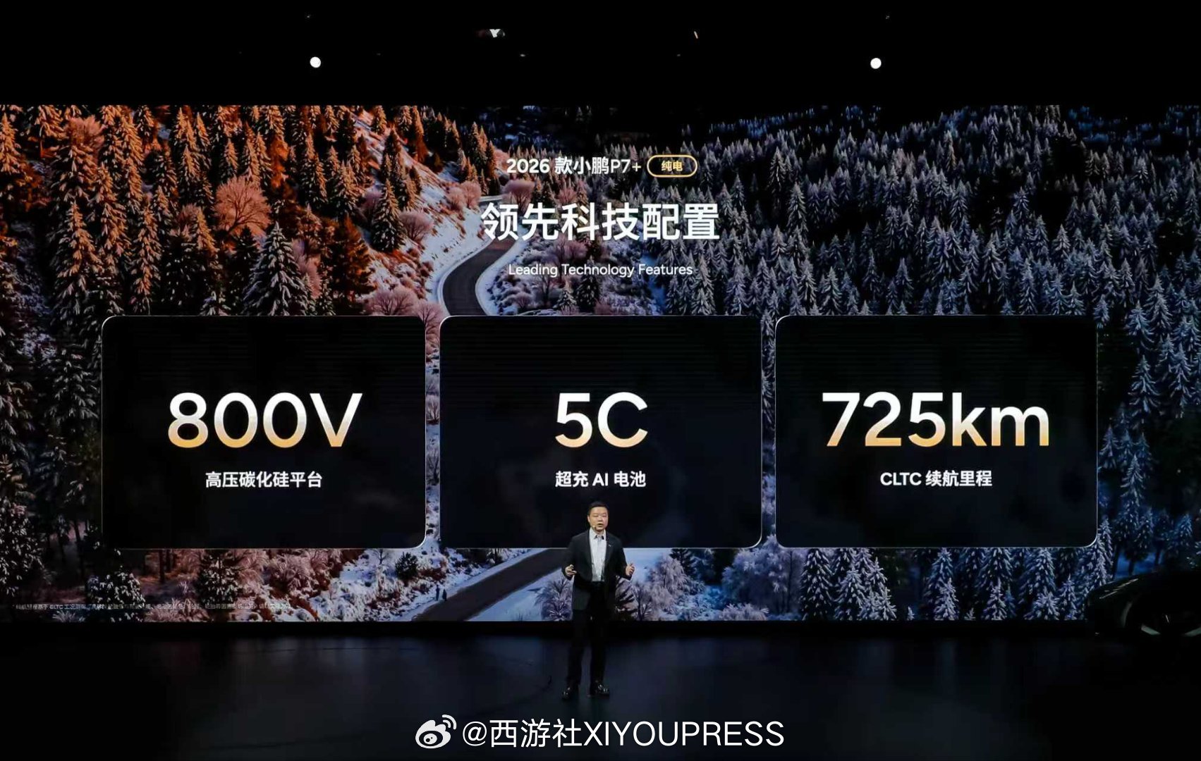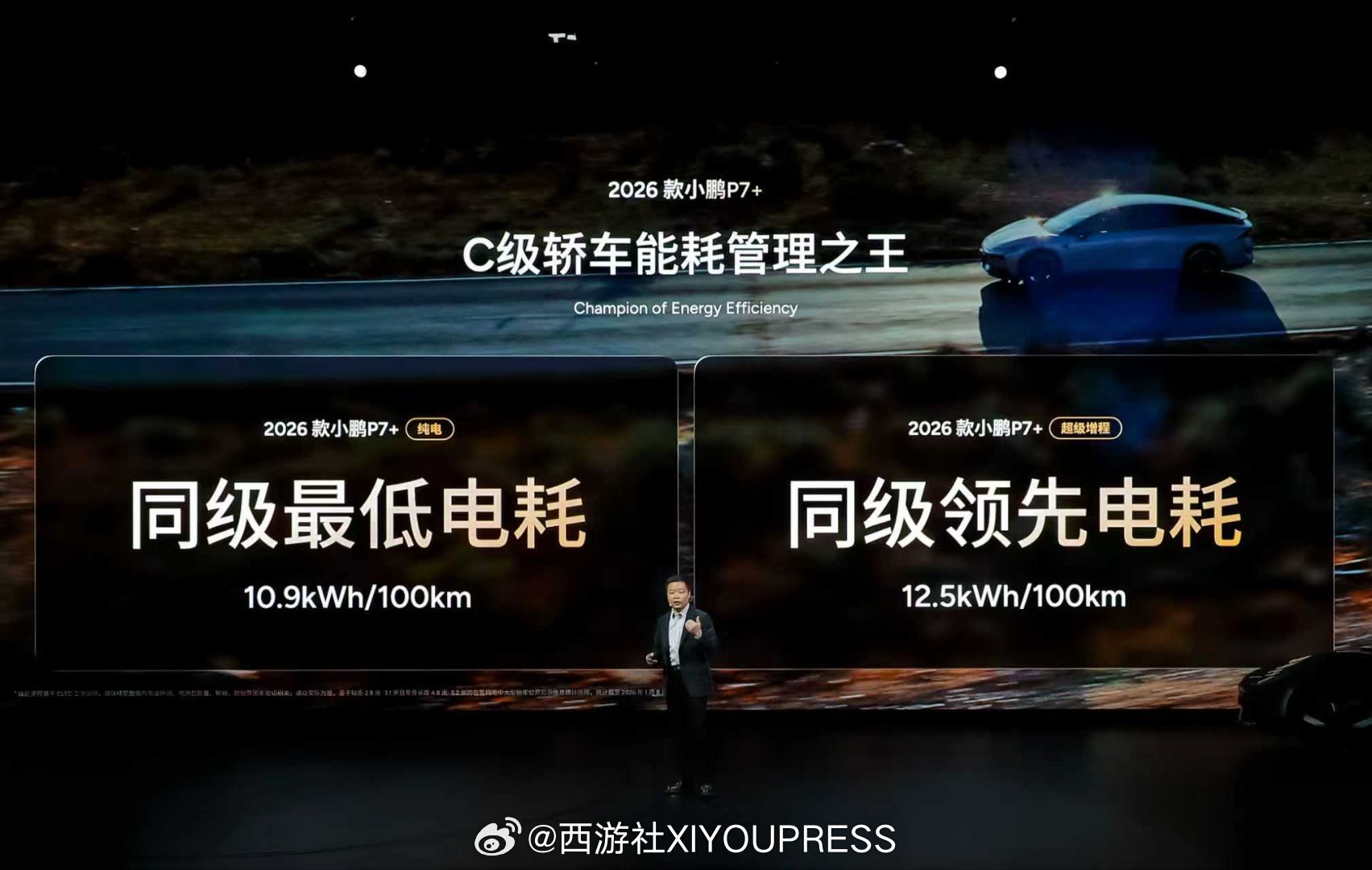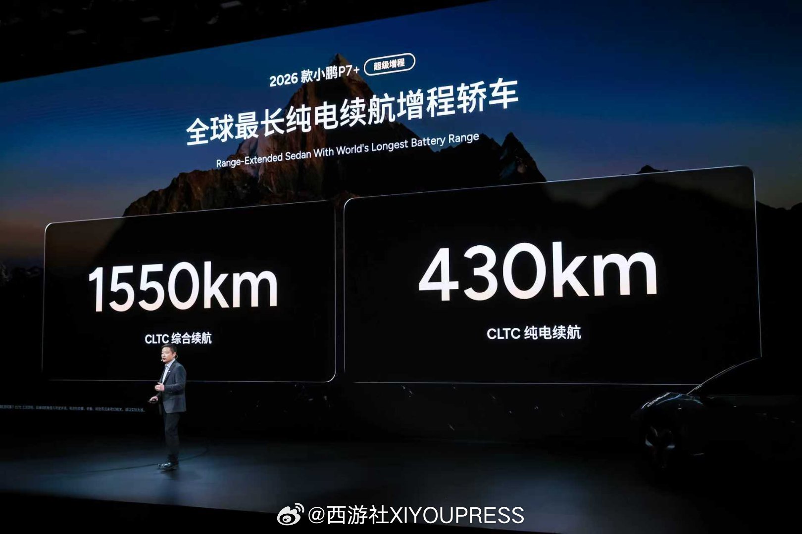 「C级轿车能耗管理之王」2026款小鹏P7+超级增程,是全球最长纯电续航增程轿车,全球能耗最低的混动轿车:CLTC综合续航1550km,纯电续航430km;拥有同级领先电耗百公里12.5kWh。新款P7+拥有800V高压SiC平台 + 5C超充AI电池 + 725km CLTC超长续航。即使在零下20度的冰雪天气,12分钟能充电70%;15分钟空调能让车内升温40度。-7℃北方冬季场景空调开启 21℃ 暖风持续1小时能耗不到1度电。小鹏新年四车齐发新款小鹏P7+自带空间魔法