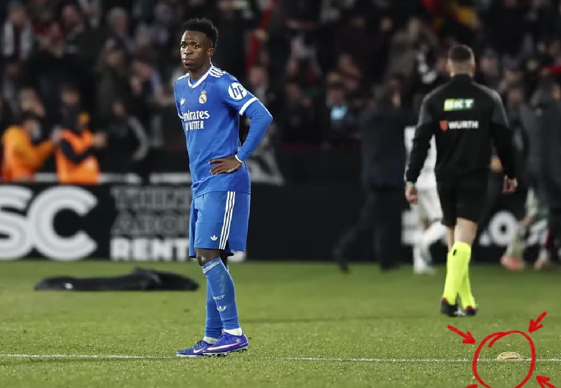 据《阿斯报》拍摄的画面显示,在贝坦科尔打入制胜球、终场哨即将吹响之际,贝尔蒙特球场一片欢腾,然而一名观众竟从看台上朝皇马球员维尼修斯扔出一根香蕉。所幸香蕉并未击中这位巴西球星,他本人也未察觉。但现场一名西班牙足协工作人员迅速注意到这一举动,立即将香蕉捡走,避免事态进一步发酵。