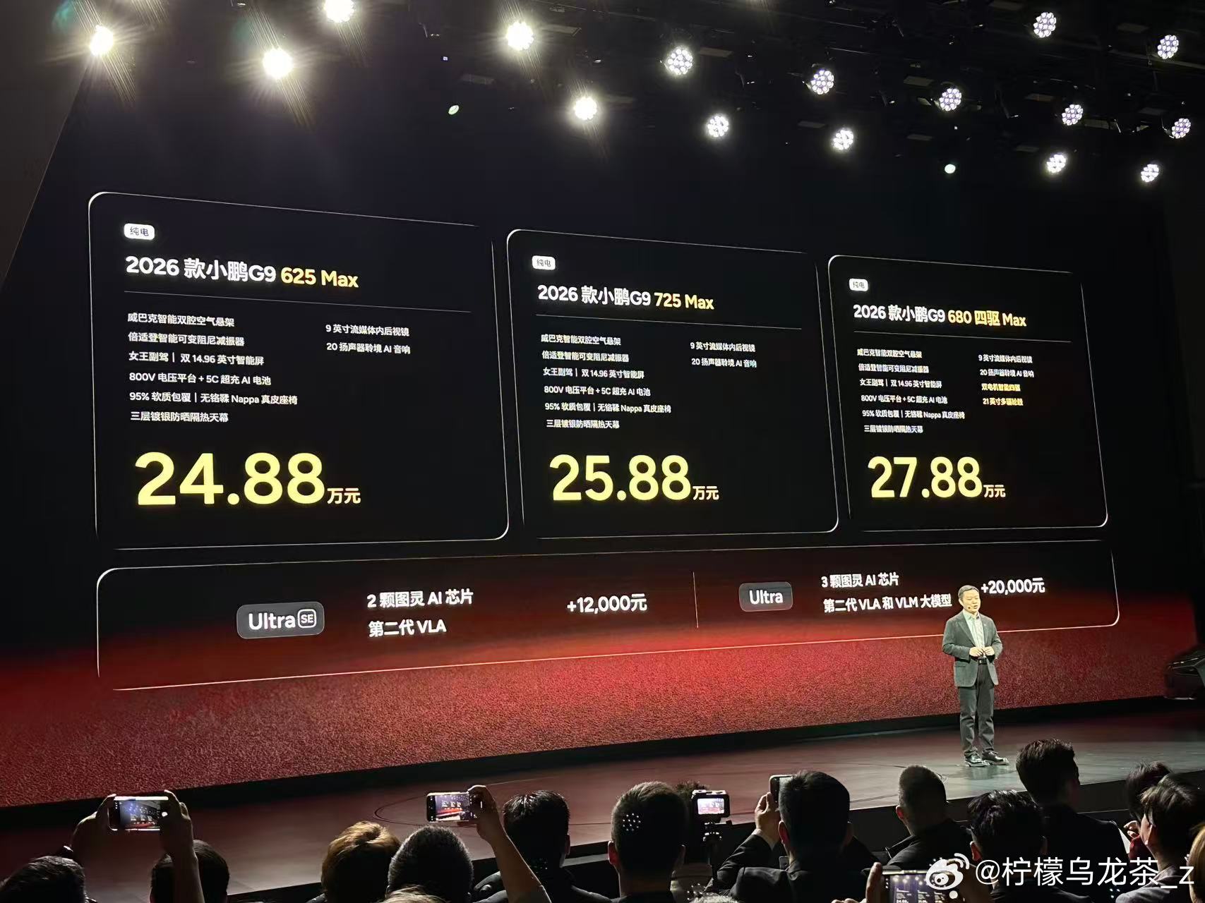 2026款G6、G9、P7+都会是全球车!G6、G9基本上保持了增配不加价的策略!然后算力作为选装。2026款P7+18.68-19.88万元2026款G6 17.68-18.68万元2026款G9 24.88-27.88万元小鹏G7 19.58-20.58万元选装双图灵➕12000元选装三图灵➕20000元小鹏新年四车齐发2026款小鹏G6和G9焕芯上市1704公里小鹏g7续航长长长长长长长长新款小鹏p7+自带空间魔法新款小鹏p7+和小鹏g7今日上市小鹏汽车
