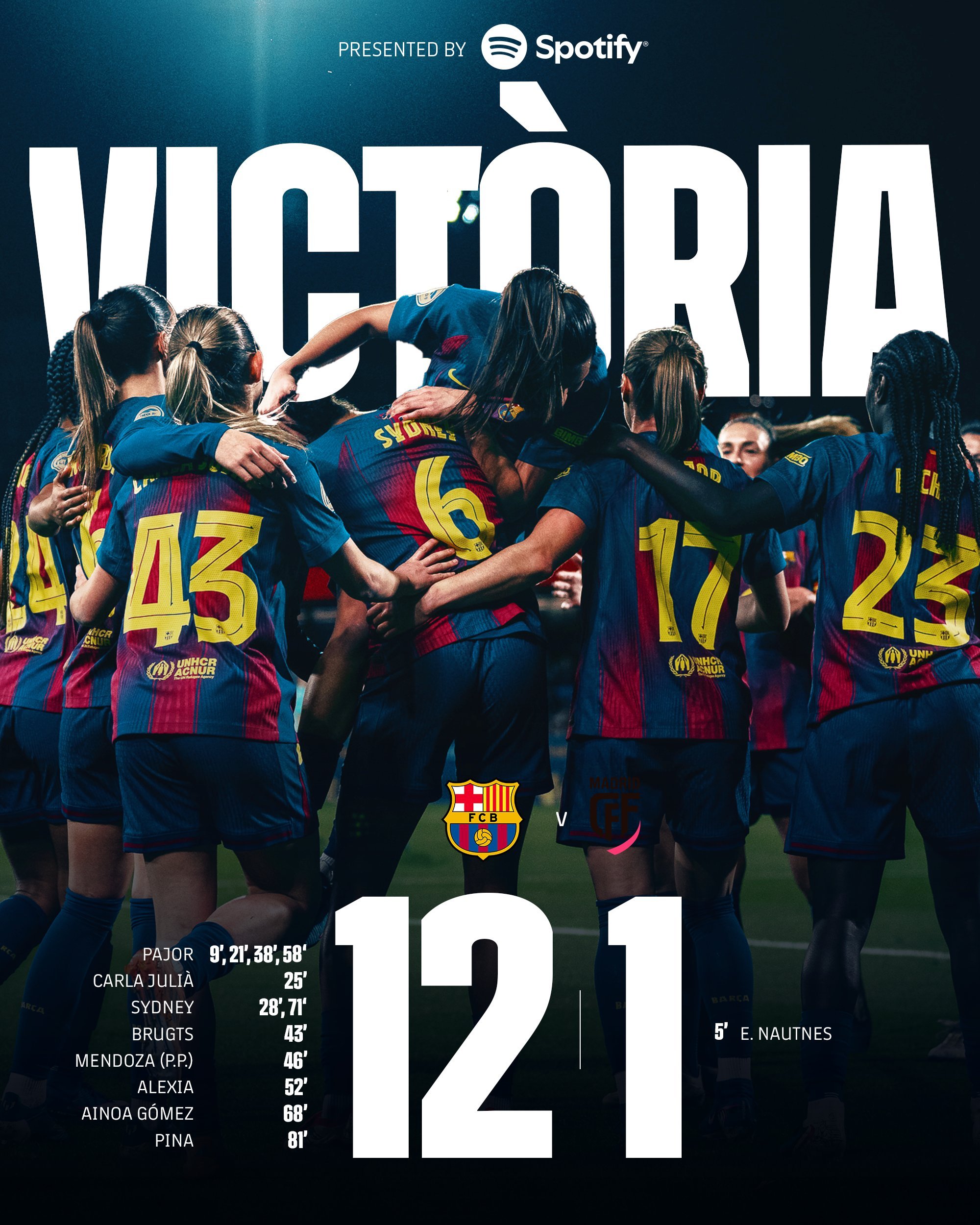 大家都在关注足总杯曼城10-1大胜埃克塞特城,昨天巴萨女足主场12-1大胜马德里