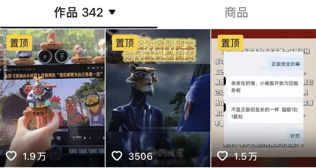下沉市场是双刃剑。《哪吒2》产品热销同时,也受到不少“盗版”质疑。桑尼森迪抖音官方账号的置顶至今仍然是对自己拥有正版授权的澄清,并拉出央视报道为自己背书。