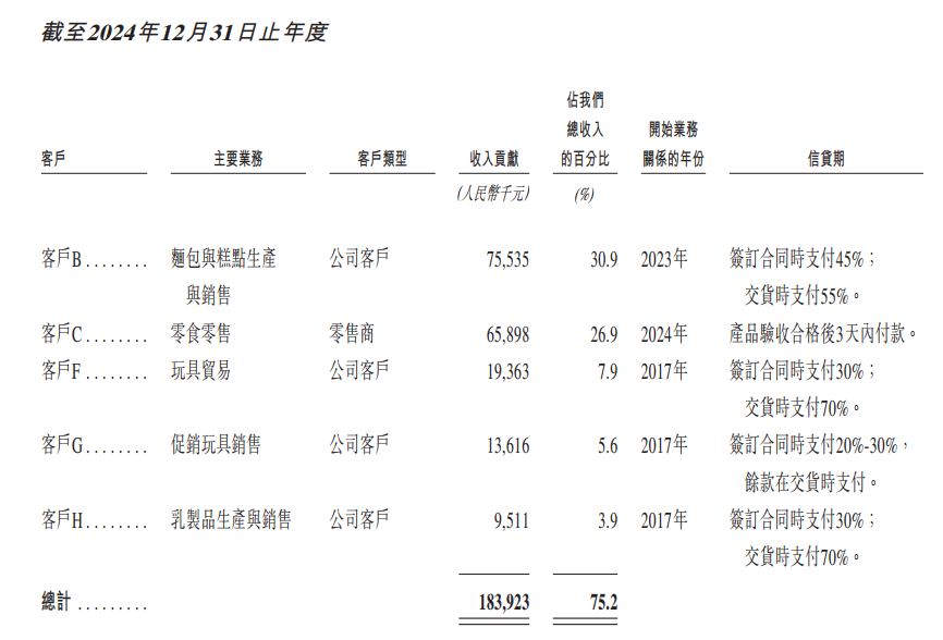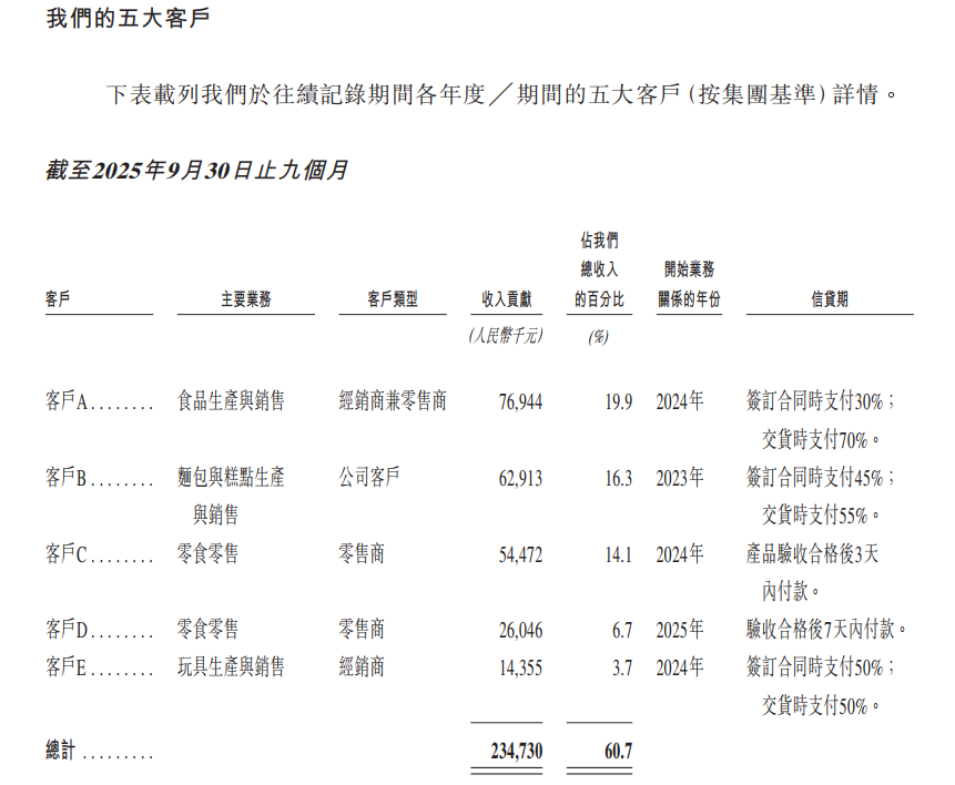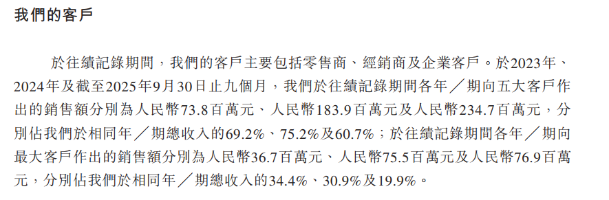 从桑尼森迪提供的客户描述中也能看出,五大客户交易额多年占公司总营收的6-7成。2024年,五大客户中有四家寻求玩家解决方案,受食品公司B所托进行的交易贡献了2024年收入的30%。到2025年,五大客户均为经销商和零售商,体现出对相关渠道的高度依赖。