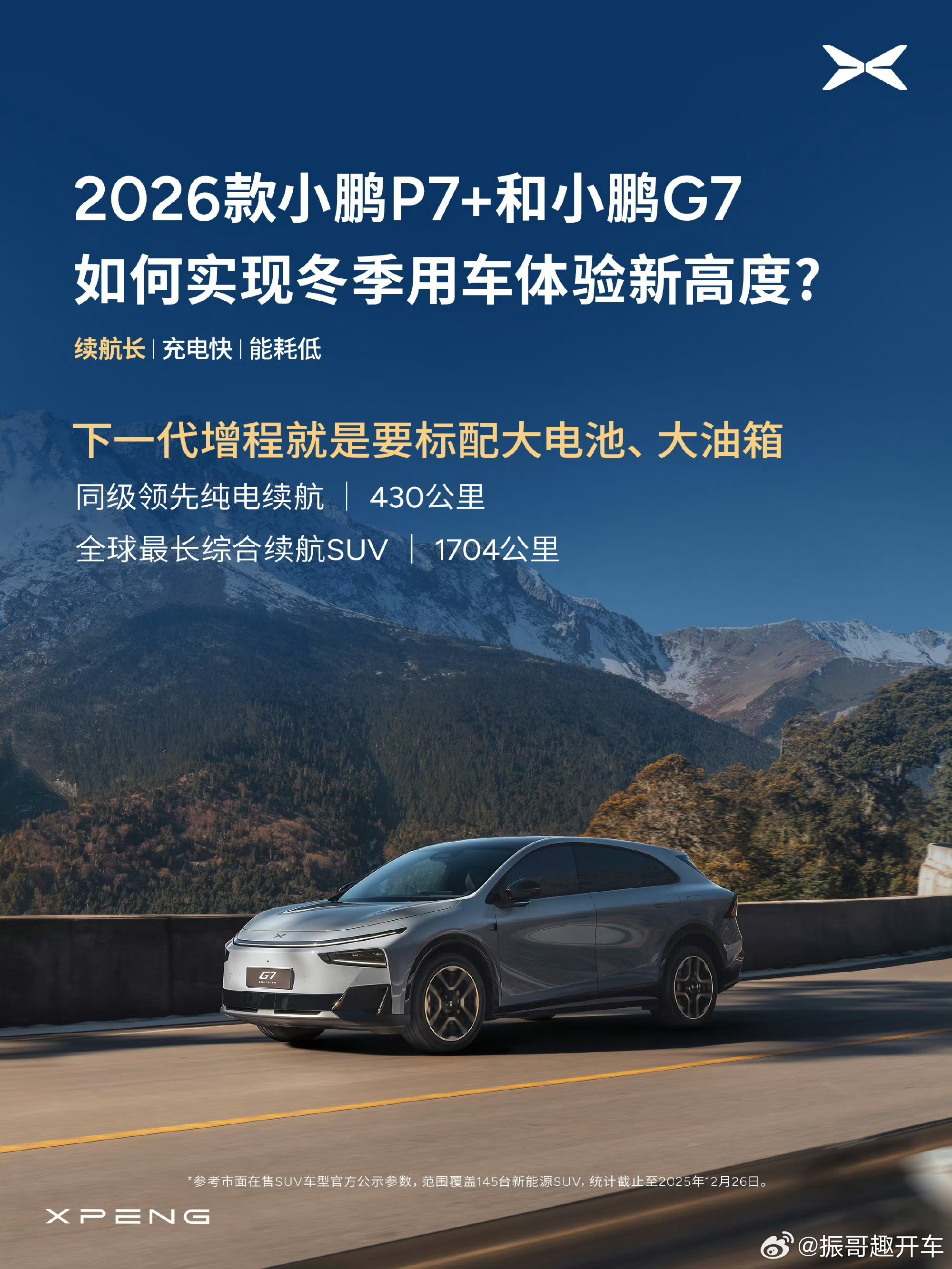1704公里小鹏G7续航长长长长长长长长新能源汽车大v聊车 小鹏G7超级增程放大招,综合续航1704公里,纯电续航430公里!「55.8kWh大电池 & 60L大油箱」+「800V架构 & 5C超充」,百公里电耗仅14kWh,馈电油耗仅5.9L/100KM,更有零下20度极寒续航实测1108.3公里,实力真不错