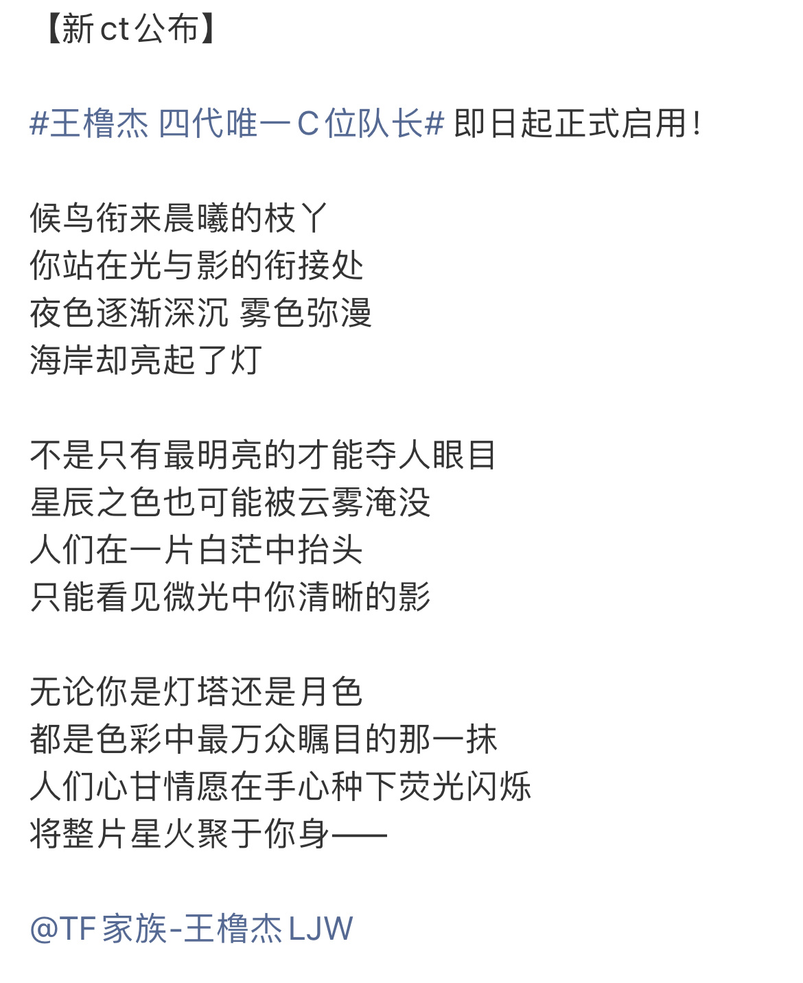 王橹杰新词条🎊王橹杰 四代唯一C位队长 正式启用