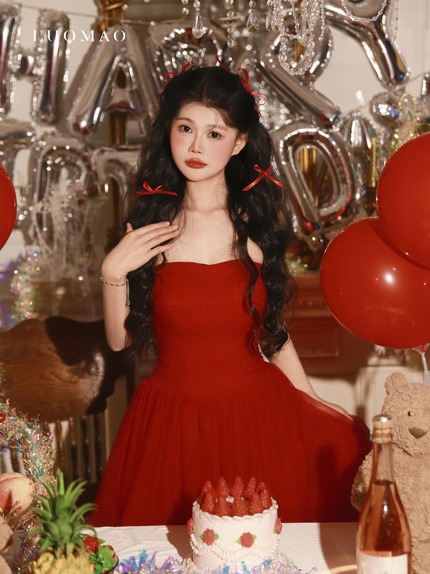 红裙蝴蝶结生日写真📸甜拽氛围直接拉满。谁懂啊!红裙 + 小蝴蝶结真的是甜酷天菜🔴 抹胸红纱裙蓬蓬的自带柔雾感,头发别几个小红蝴蝶结,又嗲又有点小拽~ 这次的派对场景太出片了:草莓蛋糕、复古红电话、闪片装饰堆一堆,随便抬手、托腮都像电影里的富家千金生日局🎞️ 朋友说这组是 “甜到心巴又拽到骨子里”,红系写真真的永远不出错! 红裙写真氛围感写真生日写真厦门写真工作室裸猫摄影