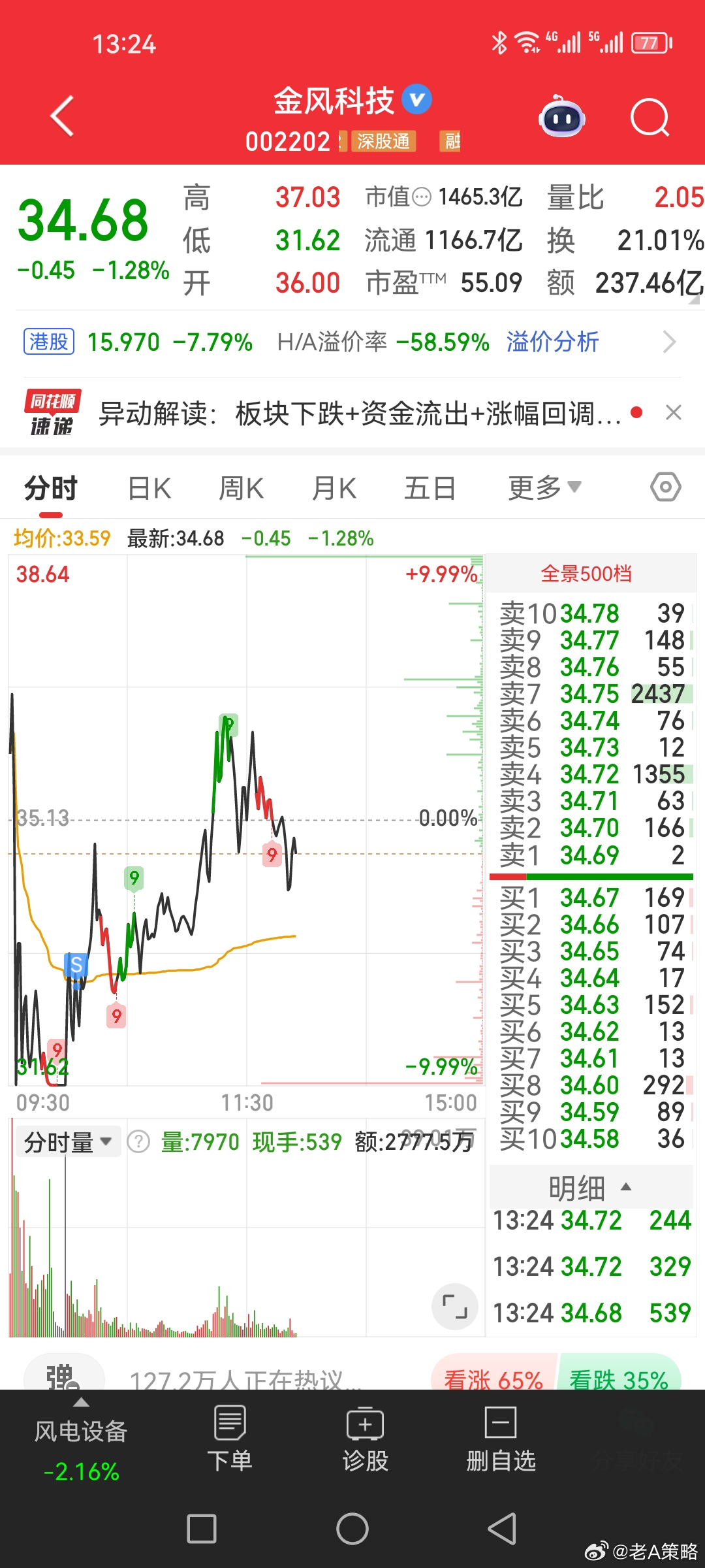 $创业板指 sz399006$ $深证成指 sz399001$ $上证指数 sh000001$ 今天卖出来了$金风科技 sz002202$