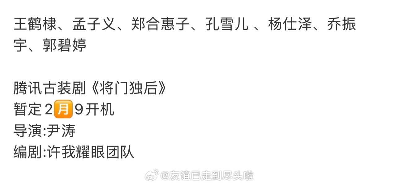 将门毒后班底出来了,东方青苍同款造型团队+许我耀眼编剧,主演除了王鹤棣孟子义没有
