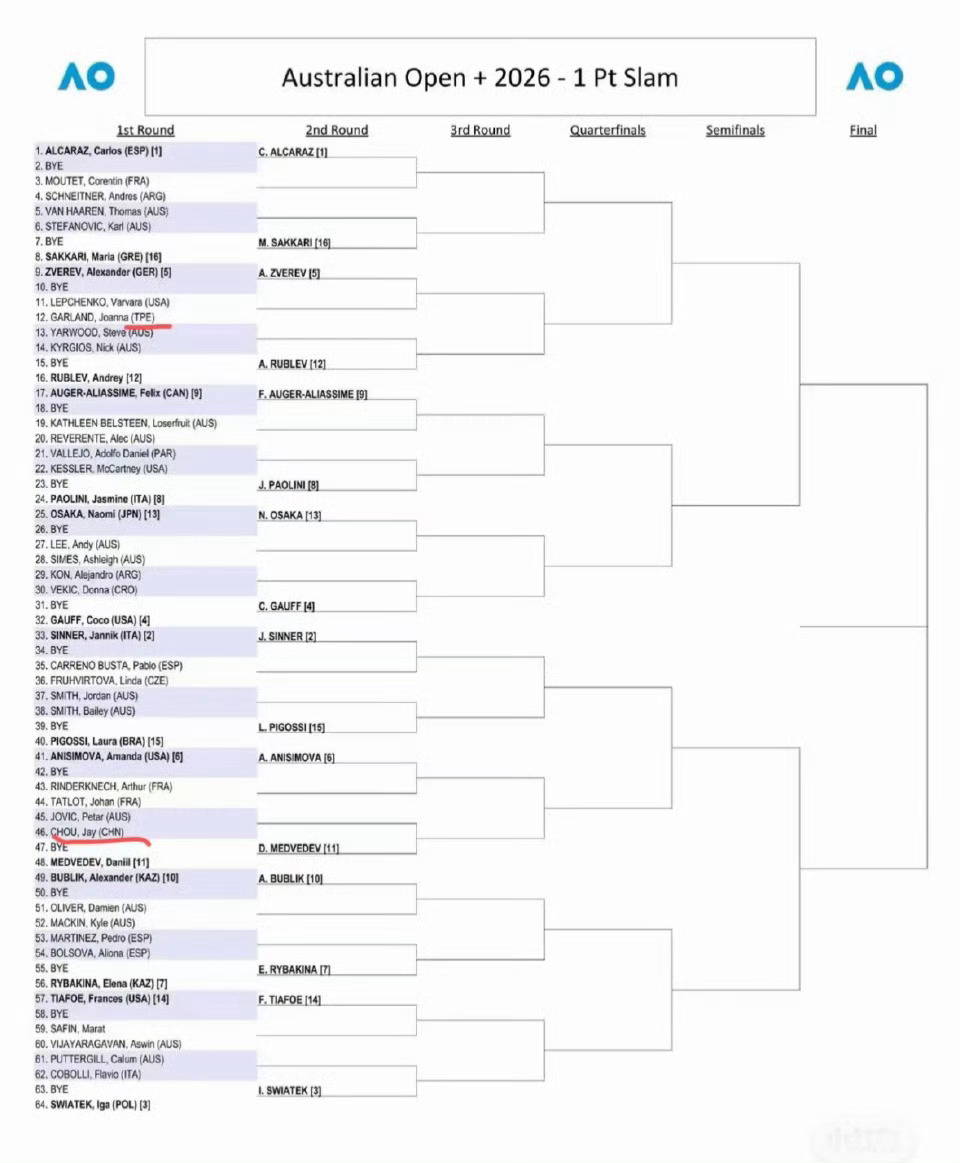 周杰伦澳网国籍标示中国这并不是澳大利意识到了自己的错误,还有台湾省选手标注不是C
