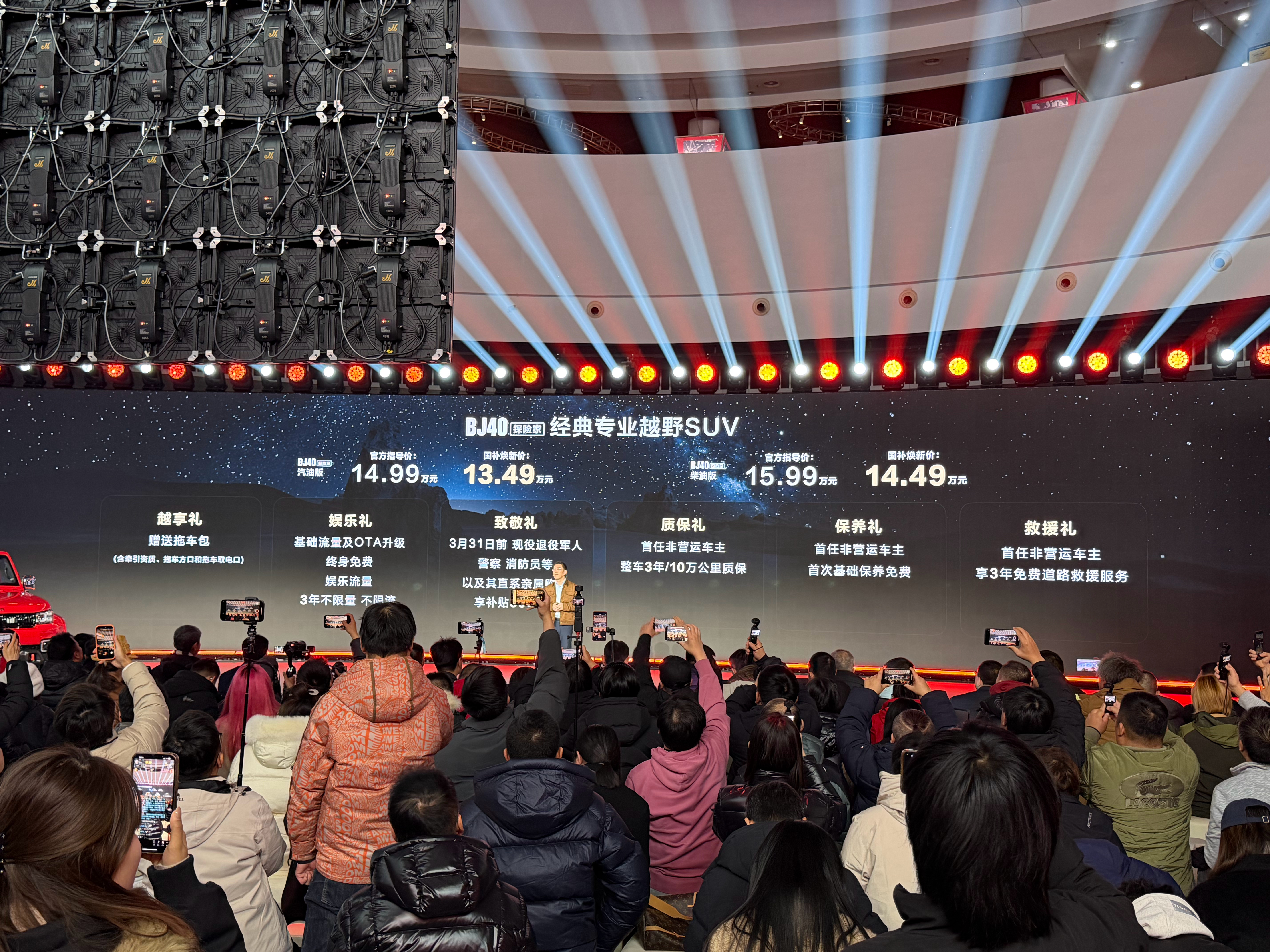 上一次来北京汽车博物馆是带孩子来参观,带他感受汽车文化。今儿我又来了现场看了BJ40探险家上市发布会。台上现场喊了一句口号,BJ40探险家,敞篷越野自由出发!车顶支持快拆,拆完全是自由的味道。大v聊车