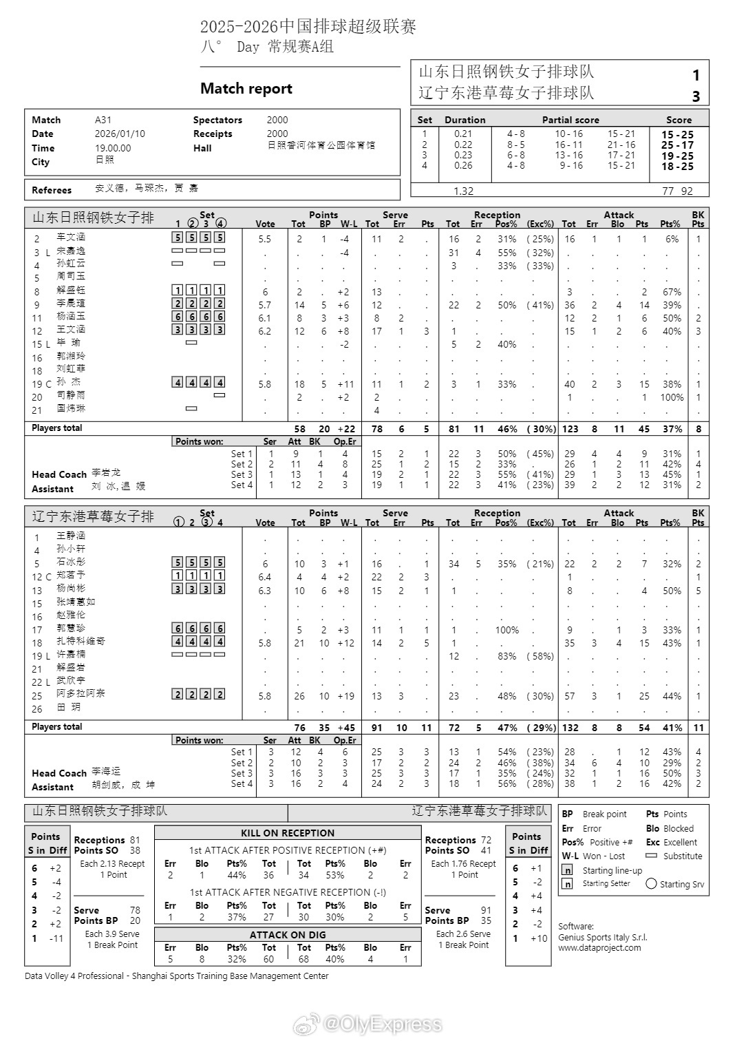 2026年1月11日-2025-2026CBA常规赛第13轮(第一阶段第13轮) 福建115-94大胜天津(福建男篮终结三连败/天津男篮遭遇两连败)/广州106-76大胜四川(潜力赛:25-18)(四川男篮遭遇十三连负 继续一胜难求 积分榜垫底)/浙江稠州89-69大胜北控(浙江稠州男篮获得三连胜) 2025-2026WCBA常规赛A组第14轮(第一阶段第14轮) 北京89-75逆转大胜陕西(北京女篮终结七连败)/江苏92-97加时不敌山东 B组第14轮 福建71-116厦门(厦门女篮获得三连胜/福建女篮遭遇八连败 继续排名小组积分榜倒数第二) 2025-2026女排超级联赛A级常规赛第一阶段第8轮 河南0-3江苏(18-25 23-25 17-25)(卫冕冠军江苏女排获得六连胜/河南女排遭遇两连败)/上海3-0福建(25-13 25-21 25-15)(上届亚军上海女排获得三连胜/福建女排遭遇六连败 暂时降至小组积分榜垫底)/山东1-3爆冷不敌辽宁(15-25 25-17 19-25 18-25)(新援磨合渐入佳境 上届季军辽宁女排终结七连败 终于迎来赛季首胜 暂时升至小组积分榜倒数第二/山东女排遭遇三连败)/天津0-3爆冷被北京横扫(20-25 23-25 23-25)(北京女排获得两连胜) B级第9轮 云南1-3广东(深圳)(19-25 16-25 25-23 22-25)(广东(深圳)女排获得五连胜 暂列小组积分榜榜首/云南女排遭遇两连败)/河北3-1江西(25-23 18-25 25-23 25-17)(河北女排终结四连败)/浙江3-0四川(25-18 25-16 25-22) 2026亚足联U23男足亚洲杯小组赛C组第2轮 伊朗0-0乌兹别克斯坦(伊朗遭遇两连平) 部分重点赛事预告:CCTV5直播:7:05 2026年厦门马拉松 13:25世界职业拳王争霸赛 19:30 2025-2026CBA常规赛第13轮(第一阶段第13轮) *辽篮-广东 CCTV5+直播:19:00 2025-2026男排超级联赛A级常规赛第一阶段第9轮 *北京-天津 22:00 2026亚足联U23男足亚洲杯小组赛D组第2轮 泰国-伊拉克 CCTV5客户端直播:15:30/16:30/19:00(2场) 2025-2026男排超级联赛A级常规赛第一阶段第9轮 辽宁-上海/*广东-河北/*北京-天津/浙江-山东 15:30(2场)/16:30 B级第9轮 云南-湖北/福建-四川/河南-江苏 19:30 2025-2026CBA常规赛第13轮(第一阶段第13轮) 深圳-北京 19:25 2026亚足联U23男足亚洲杯小组赛D组第2轮 中国-澳大利亚 其他:19:35(4场)/20:00 2025-2026CBA常规赛第13轮(第一阶段第13轮) 吉林-青岛/山东-南京(同曦)/*上海-山西/新疆-江苏/宁波-浙江广厦 19:30 2025-2026WCBA常规赛A组第14轮(第一阶段第14轮) 河北(石家庄)-新疆 19:30(2场) B组第14轮 辽宁-江西/河南-合肥