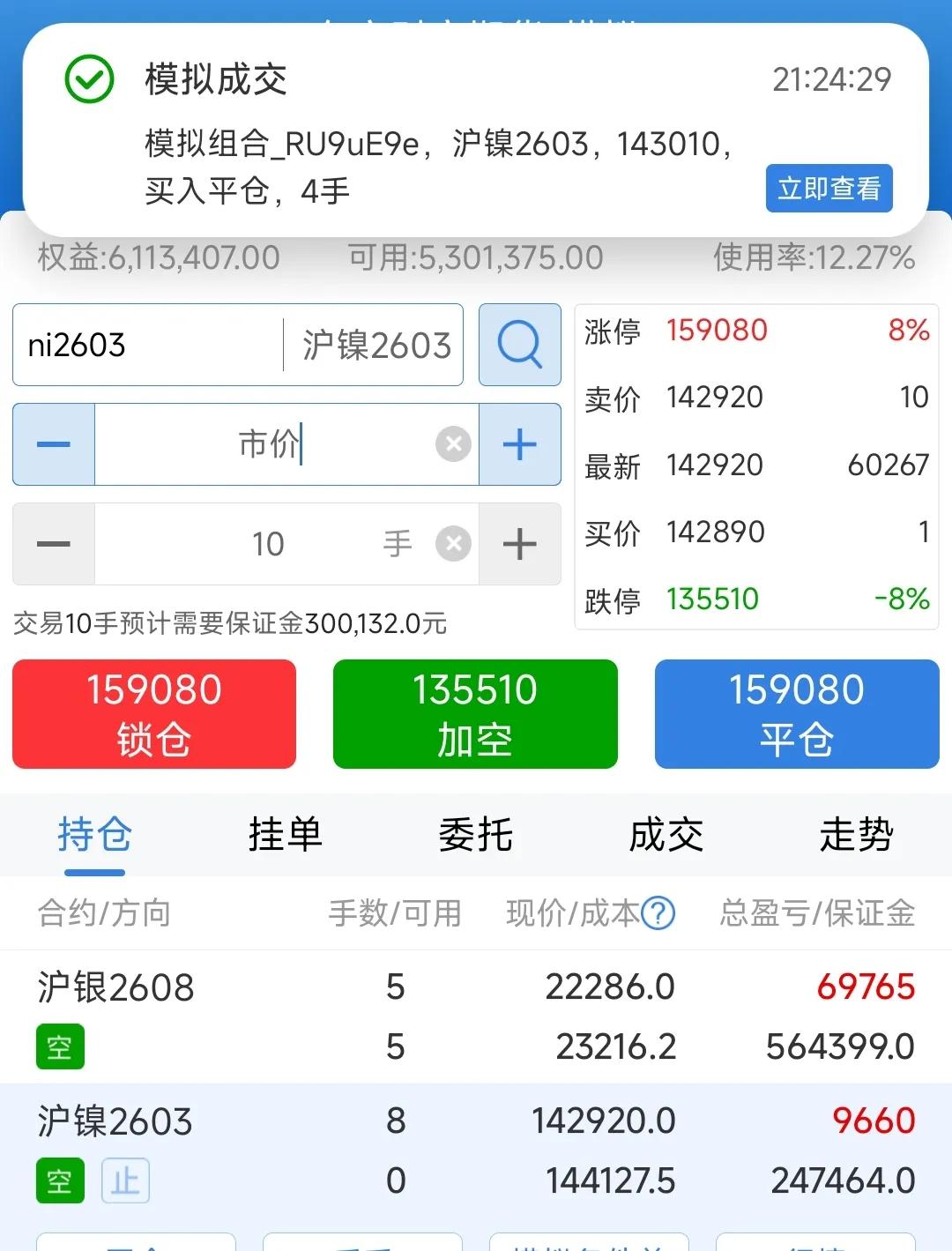 为什么模拟仓可以大赚?而实战不行?碰到好的机会,大概率赚,模拟仓不管三七二十一,先买了再说,而实盘交易要考虑一下,犹豫间时机就过了。模拟仓一般小仓位运行,亏赢不管,设个条件单,让它自个撞去,资金量大,不会爆仓,做反了发现即使改正,很多大佬就是拿一手进去,发现持续亏钱就重仓做反方向。对于大多数人来说,放1万,看好方向,只买一手玉米等,设好条件单,长期都能赚。 比如妖孽实盘前几天做空真拿不住,模拟盘只需要偶尔看两眼,确认下大方向有没错。小资金哪能抗这么久?