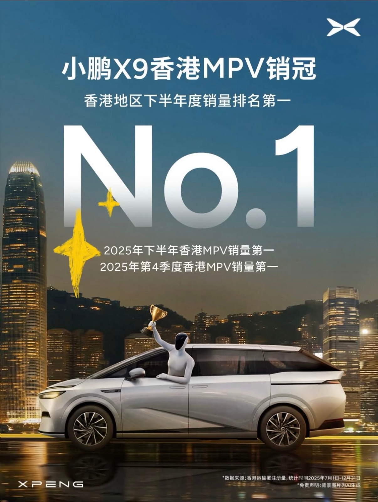 小鹏X9不仅登顶2025年12月内地高端MPV个人用户交付榜,更强势包揽香港MPV下半年➕第四季度销量双料冠军!
