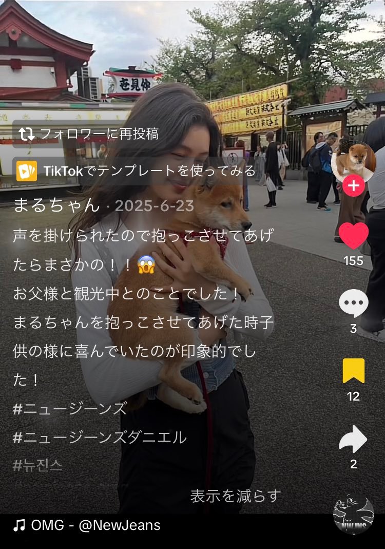 250623有人跟我搭话,我就让她抱了抱(狗狗),结果没想到居然是Danielle!😱是和爸爸一起观光的时候发生的事啦!让小丸(狗狗名)被她抱着的时候,她像孩子一样开心的样子,真的太让人印象深刻了!