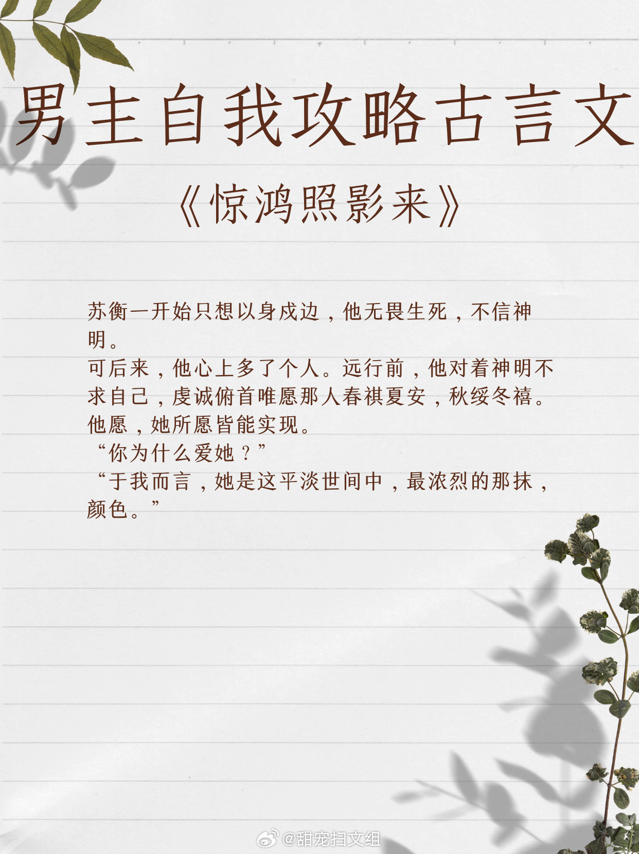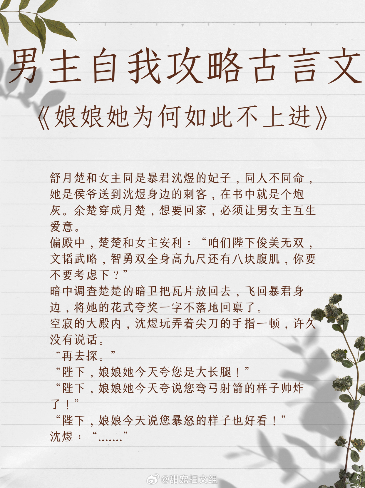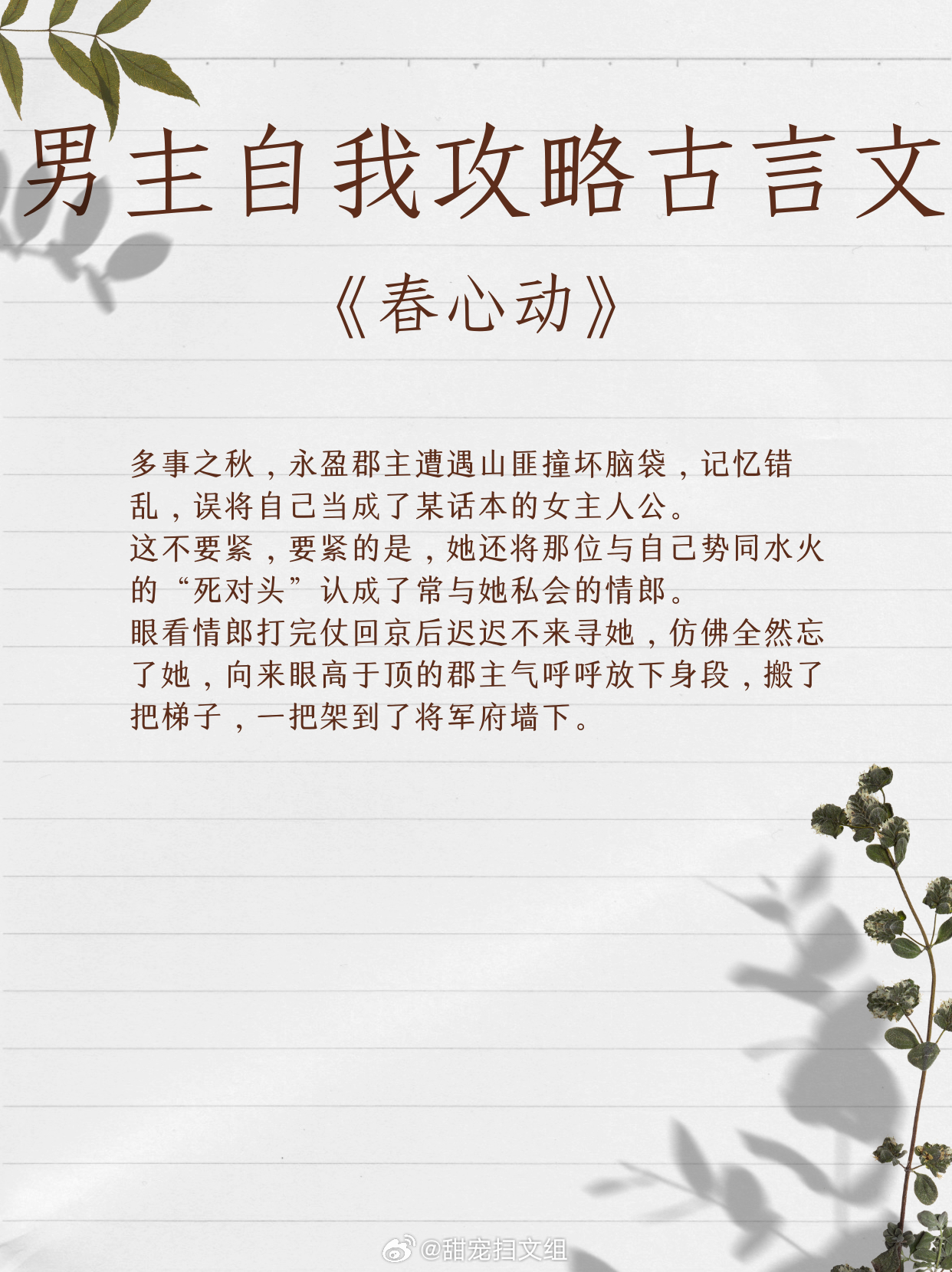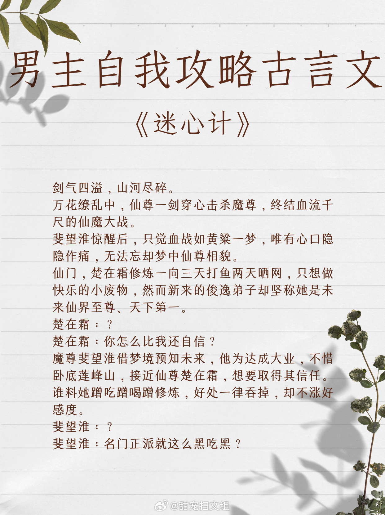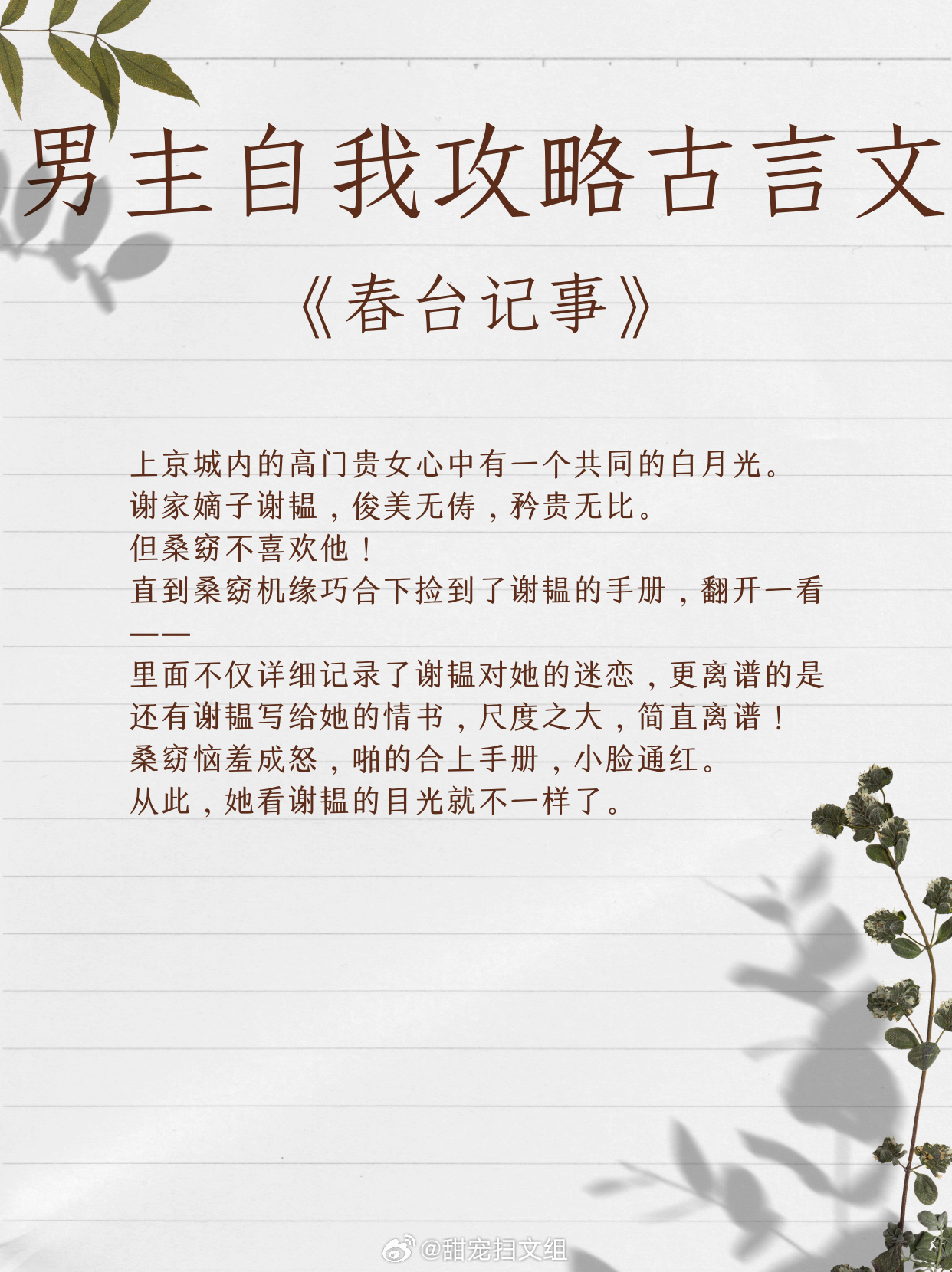 让人上头的男主自我攻略古言文,我磕的cp必须是真的。1、《迷心计》 作者:当木当泽2、《魔尊跟我相爱相杀》 作者:江月年年3、《醒醒,我是反派》 作者:纪开怀4、《娘娘她为何如此不上进》作者:明河谷5、《春台记事》作者:盛晚风6、《惊鸿照影来》作者:汤苒苒7、《春心动》作者:顾了之8、《反派大美食家》作者:鱼七彩9、《古代吃货生存指南》作者:可乐姜汤让我吹爆的宝藏小说 越读越上头的小说神作