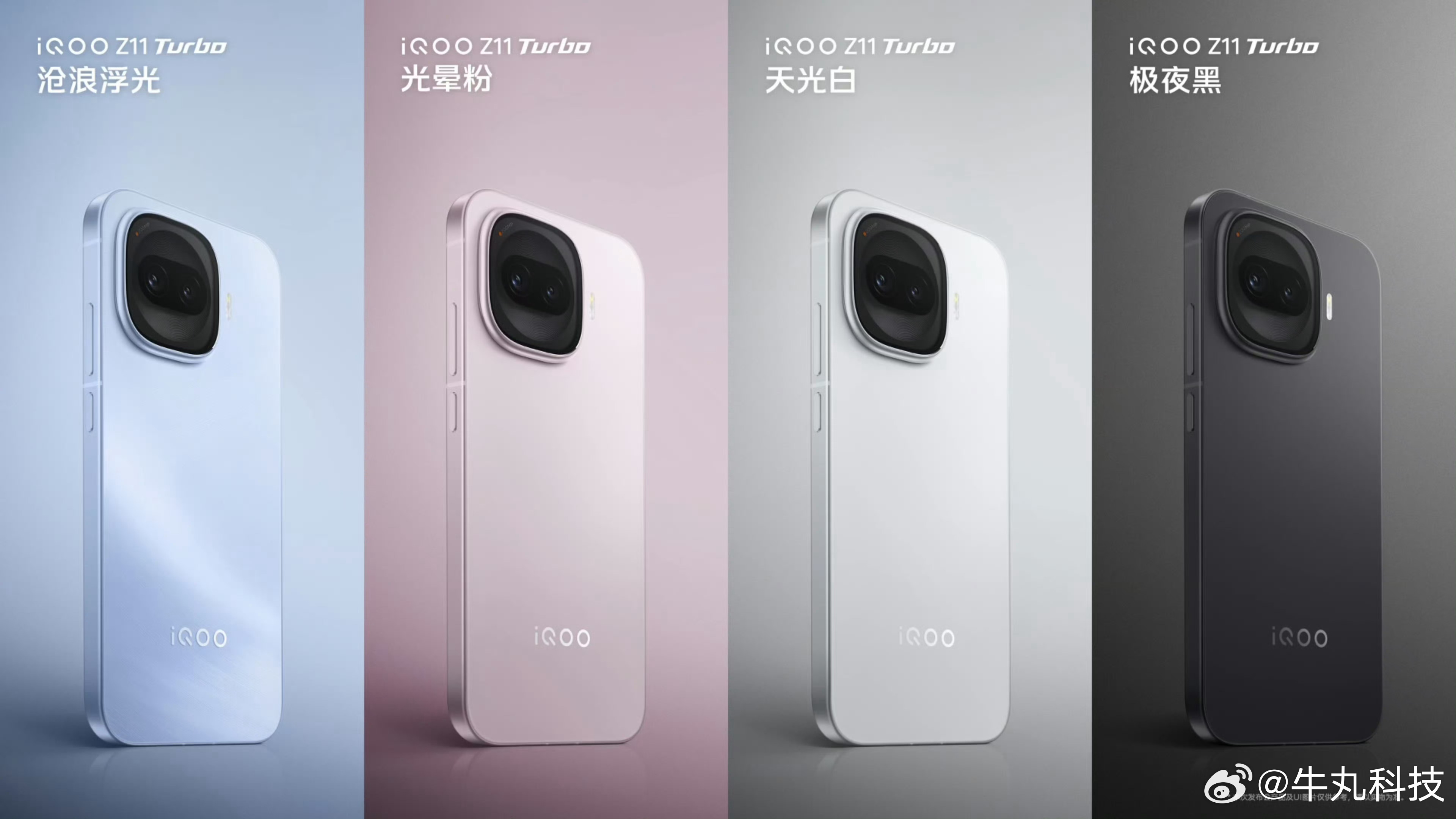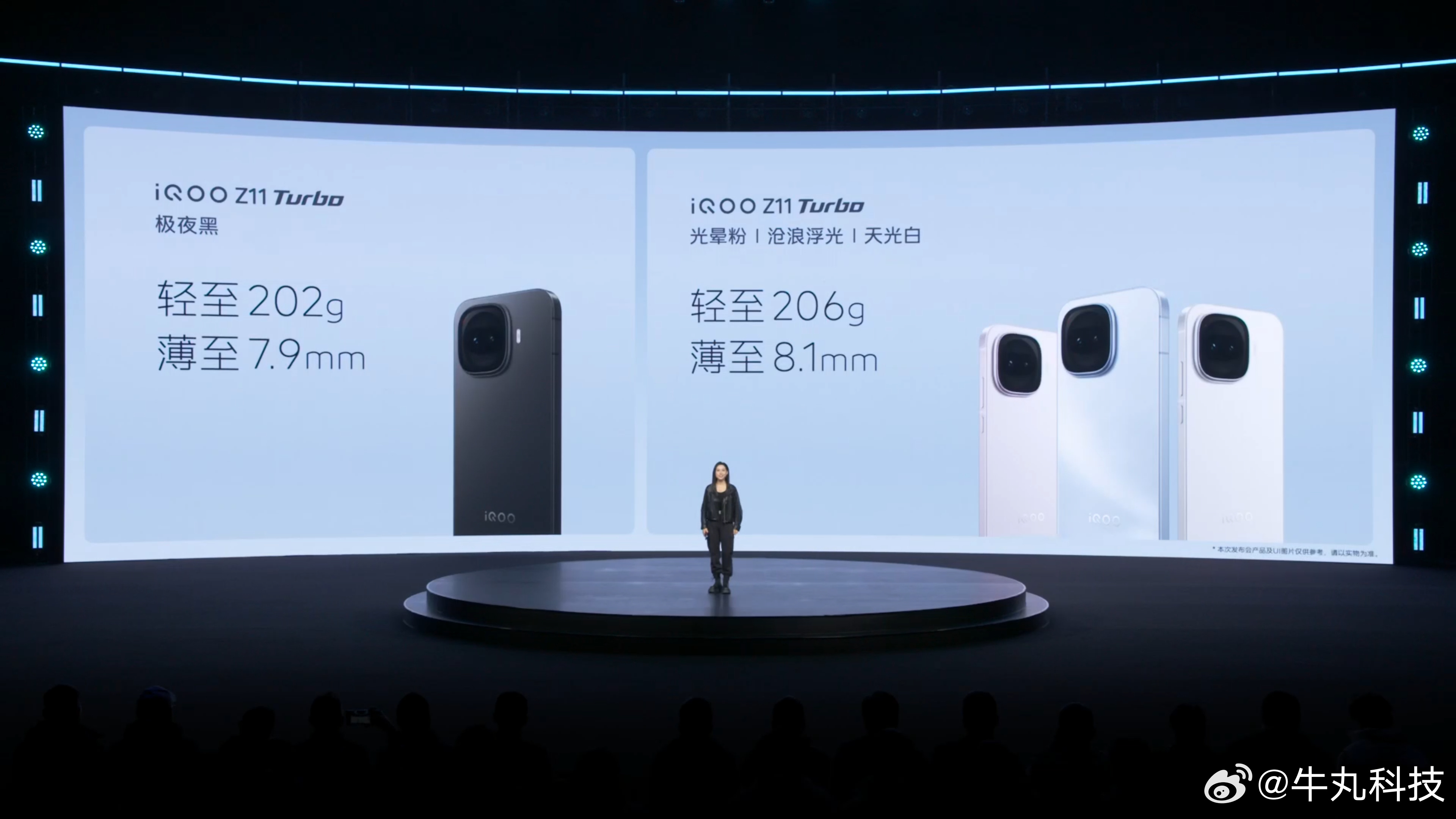 iQOO Z11 Turbo发布会开始啦!新机四个配色大家会怎么选?:沧浪浮光、光晕粉、天光白、极夜黑旗舰质感:旗舰同款高强度航空级铝合金金属中框,后盖玻璃细腻舒适,大R角设计,精致又耐看;更有IP68/IP69防尘防水;舒适握持:6.59英寸黄金中屏,74.42mm宽度,手感爆表;设计更是点睛:缓坡Deco以金属勾勒方圆形状,打造“机器之眼”的悬浮感。