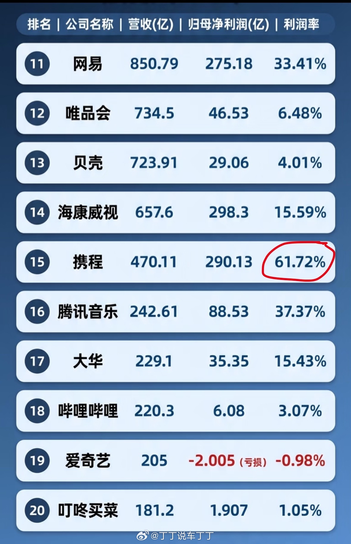 真的是文字越少事越大,是该好好查查。携程一个预定平台,去年三季度毛利率做到了81