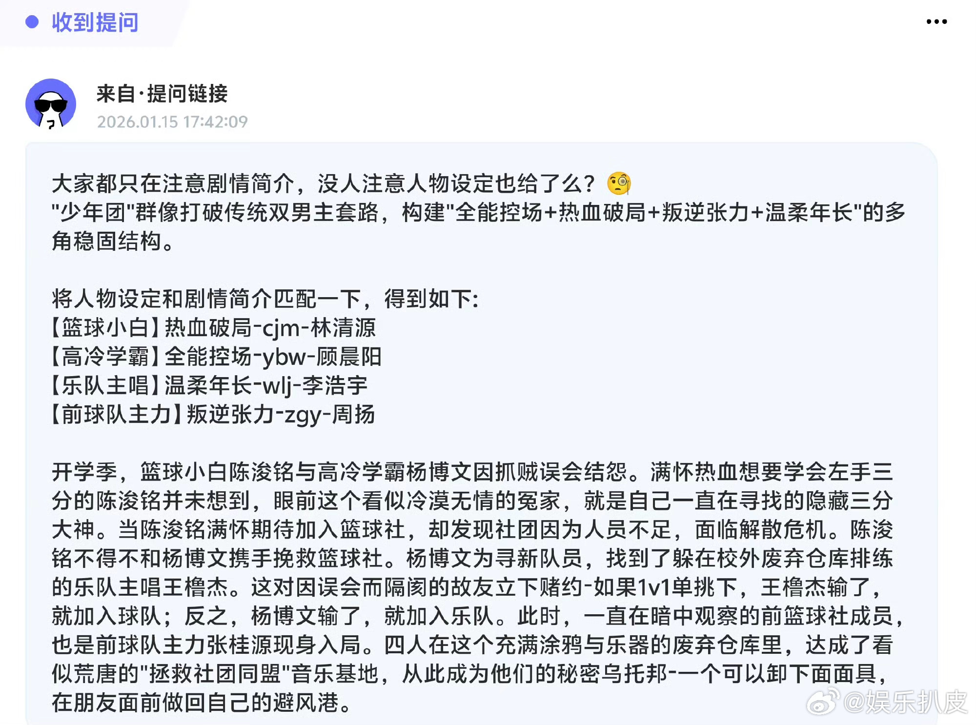 我们的少年时代2剧情TF四代《我们的少年时代2》剧情从前作棒球改为“篮球×乐团”双轨,讲述四位少年(林清源、顾晨阳、李浩宇、周扬)为拯救社团建立“秘密乌托邦”基地,主打青春群像成长。期待《我们的少年时代2》选角,你们提名谁?2025微博之夜爆款创作大赛