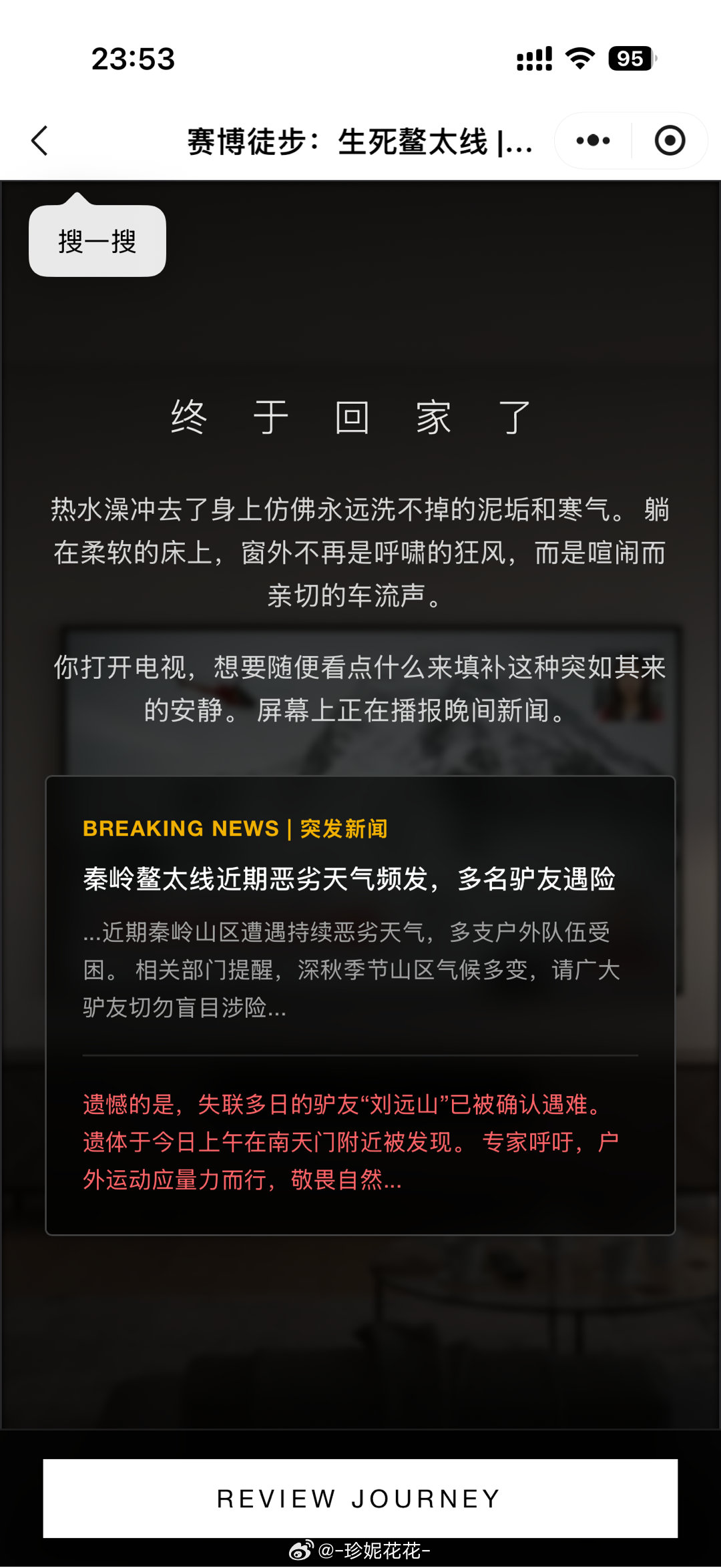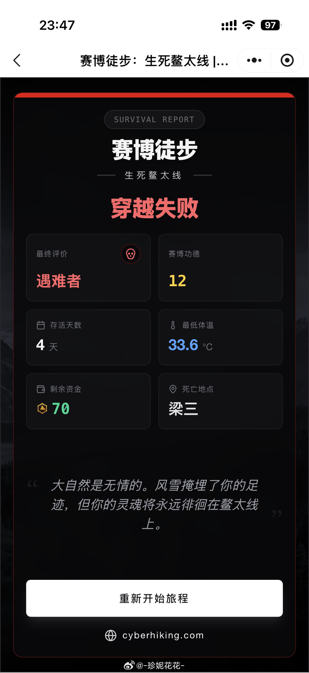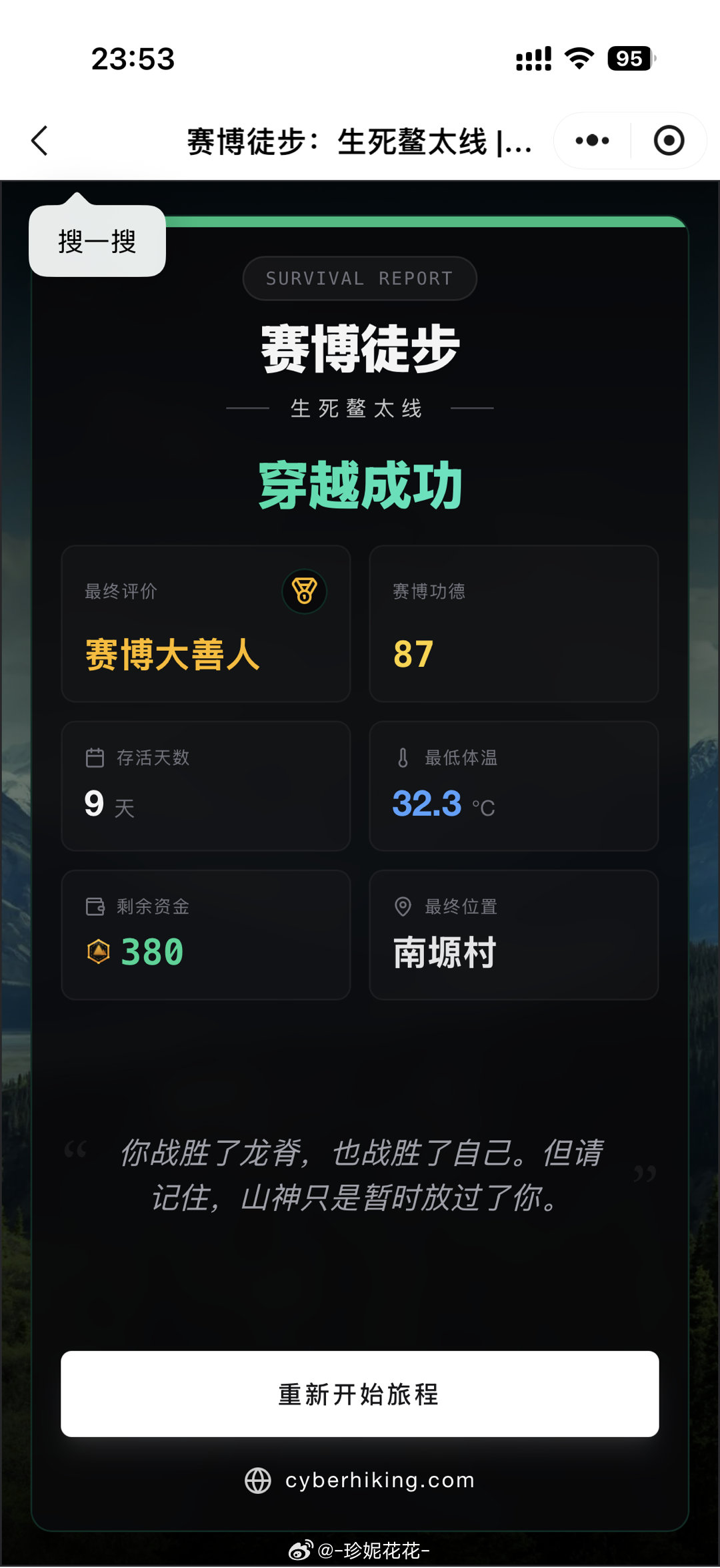 最近因为看神秘园,玩上了赛博徒步,还真挺好玩的hhhh,不过我没救到人,明天再来