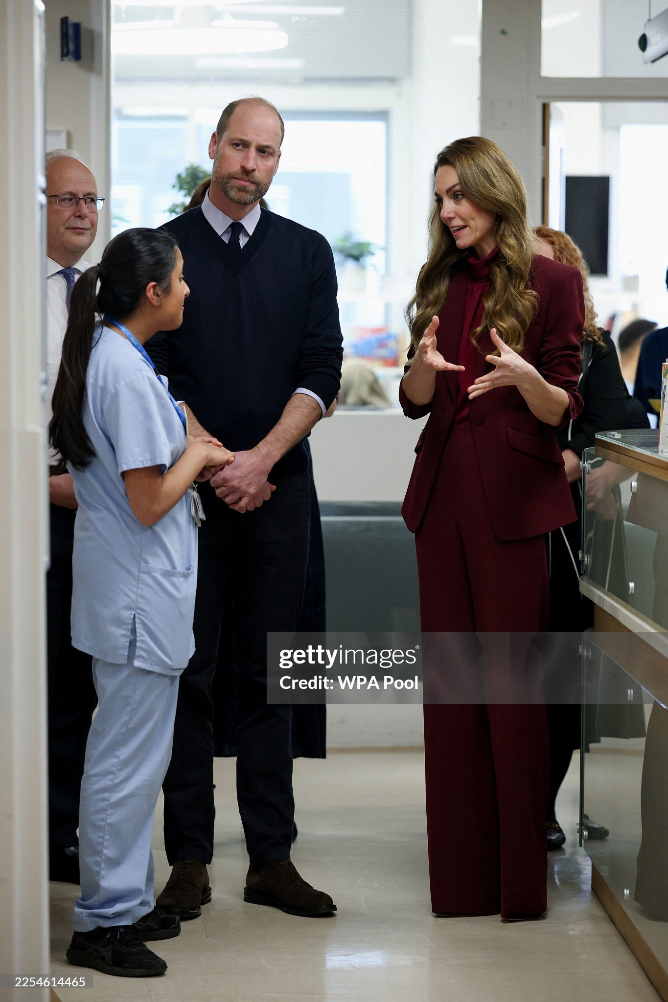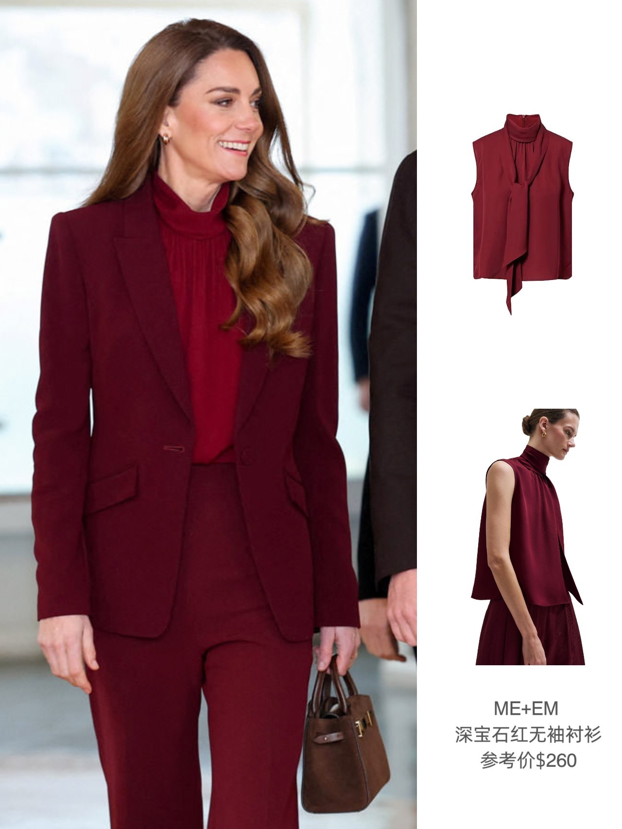1月9日,访问伦敦查令十字医院🏥~开年红LOOK,红红火火,重穿的Roland Mouret的酒红色套装(截至目前,穿过五次,去年还有入手了套灰色的,看得出来是真爱),唯一的新品是内搭的ME+EM的无袖衬衫~katemiddleton英国王室王室时尚