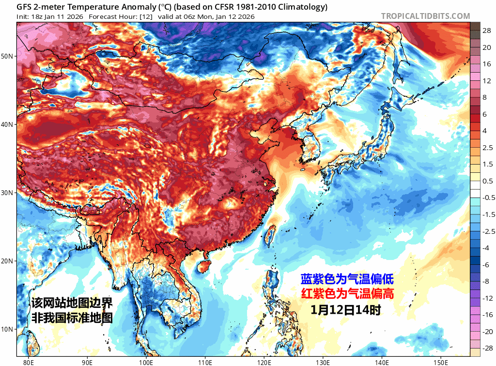 【一周天气——冷空气周末发力】本周(1月12日-18日),冷空气先在西伯利亚囤积,周末到下周初可能南下,导致我国气温从偏高转为偏低,而且还可能导致较大范围雨雪天气。但在冷空气到来前,多地天气还是干、暖为主。13-16日期间,黄淮、江淮、江南多地气温大幅偏高,甚至可能破纪录。具体关注:1、降水本周前段,我国降水总体较少。受到冷空气影响,12-14日,内蒙古东部、黑龙江、吉林、辽宁北部、新疆北部等地将先后出现小到中雪,其中,新疆北部、黑龙江东南部、吉林东部局地大到暴雪。14-16日,还有冷空气将影响北方地区,新疆北部、内蒙古中东部、东北地区中部等地部分地区将有小雪。16日以后,暖湿气流活跃,我国的降水呈现增多趋势。而且17日以后北方还有冷空气南下,冷暖气流交汇,18-20日,西北地区东部、华北西部、黄淮、江淮、江汉及江南北部等地部分地区有小到中雪或雨夹雪,局地有大雪或暴雪,贵州、湖南中西部等地部分地区有冻雨,西南地区东部、江南南部和华南西部等地有小雨。图1为官方报的本周降水,图2-3为欧美数值预报的本周到下周初的雨雪分布。图4-5为形势场预报。周前段,我国大部分地区还是处于高空西北气流控制下,因此晴朗干燥的天气居多。14日以后南支槽活跃,西南-江南西部一带的降水率先增多。18日以后冷暖交汇,黄河-长江之间区域,将有降雪或雨转雪。2、气温本周大多数时间东北地区气温偏低。而且本周末到下周初,随着强冷空气南压,北方部分城市气温可能创立冬后新低:比如18日白天最高气温:哈尔滨零下19℃、乌鲁木齐零下16℃、石家庄和天津零下2℃。乌鲁木齐报18日最低气温零下25℃。19日晨最低气温:长春零下31℃、沈阳零下30℃、哈尔滨零下29℃。在冷空气到来前,黄淮、江淮、江南的气温将大幅偏高。部分城市会接近甚至打破当地1月中旬最高纪录,预报本周最高和1月中旬纪录对比:南京20℃/19.8℃、合肥20℃/19.3℃、长沙22℃/22.6℃、杭州22℃/22.6℃、武汉21℃/22℃。天气温暖程度感觉是快要入春了,甚至出现简标入春的情况。但从形势预报看,本周冷空气在西伯利亚不断囤积。冷高压可达1055百帕。周末开始缓慢南下。因为冷涡-横槽没有大幅旋转南下,强冷空气不是爆发南下,而是缓慢向南渗透,但也会使得18-20日,中东部多地,自北向南气温转为偏低。今冬数九,三九不太冷,四九有可能成为最冷的九天。3、其他本周四川盆地多雾和霾天气。另外13日至15日太行山东侧,可能有霾。13-14日,内蒙古西部、甘肃西部、宁夏、陕西北部等地的部分地区有沙尘天气。此外,本周末到下周初,在菲律宾东侧有低压扰动发展,能否成为今年的1号台风,待定观察。
