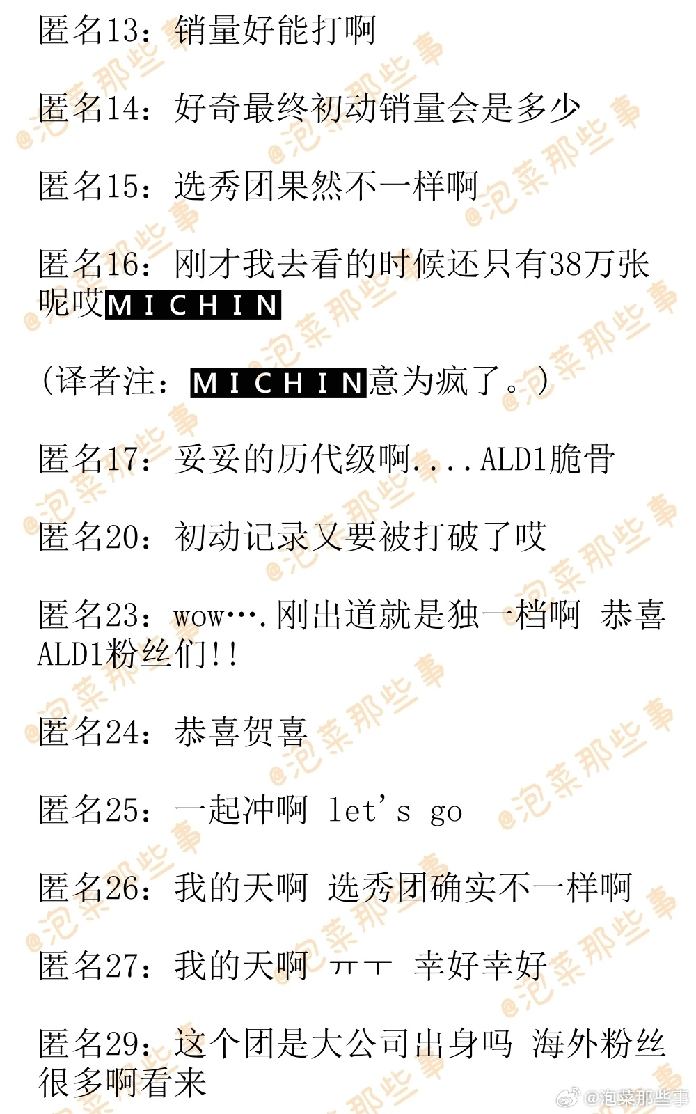 🔥韩网热帖评论翻译🔥ALD1出道专初动首日实时销量已经突破80万张了哎cr.instiz