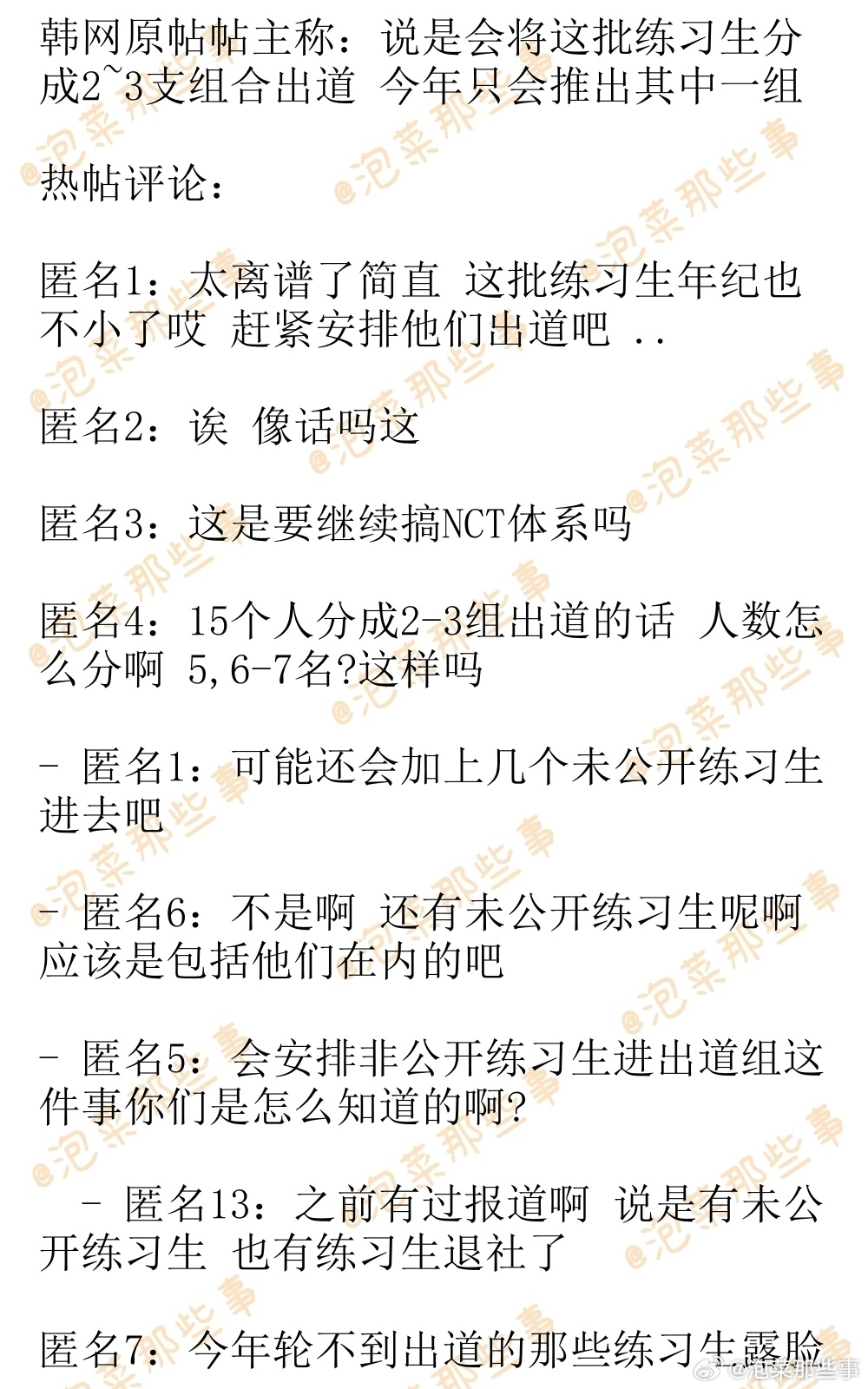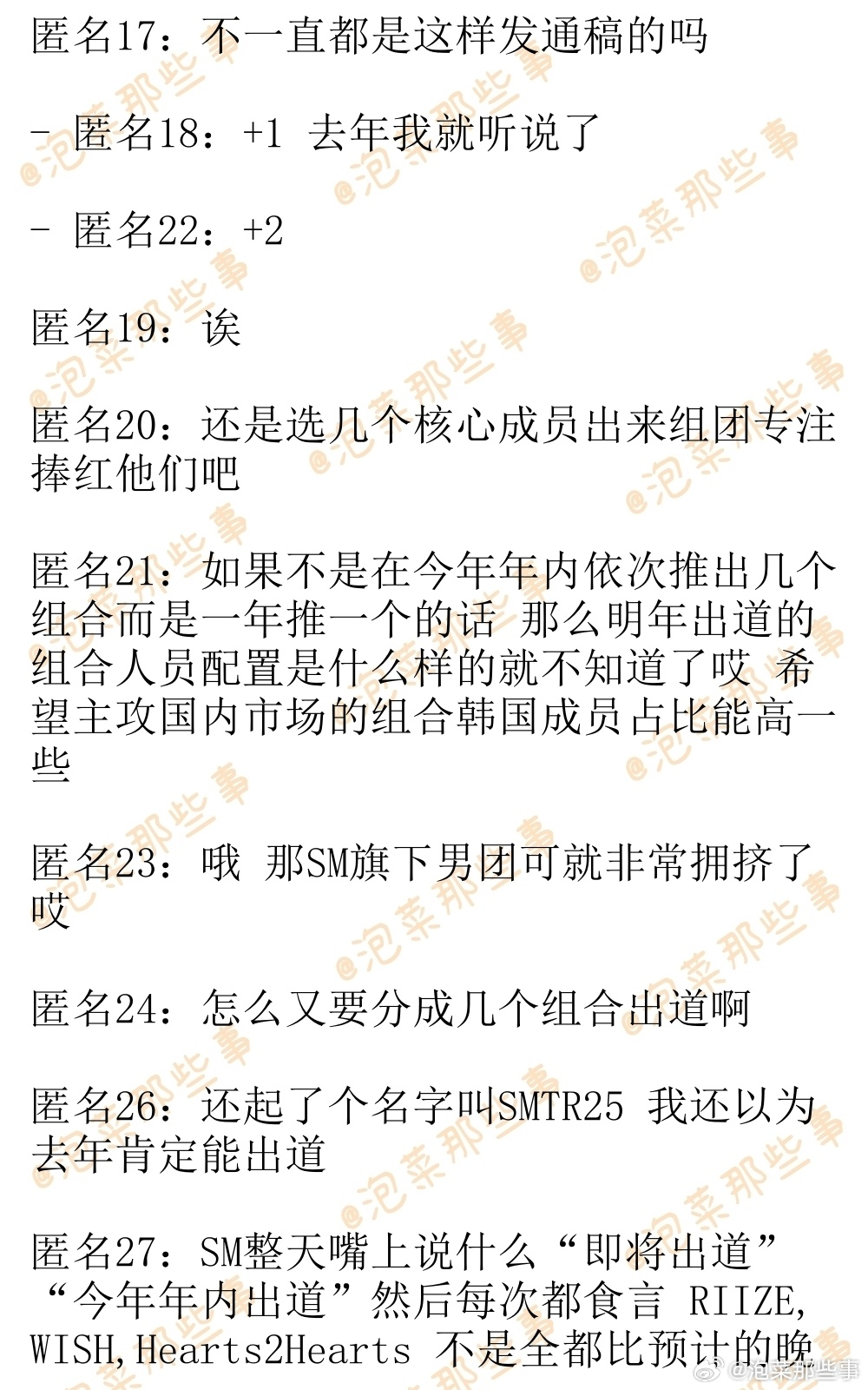🔥韩网热帖评论翻译🔥SMTR25出道计划韩网原帖帖主称:说是会将这批练习生分成2~3支组合出道 今年只会推出其中一组cr.instiz