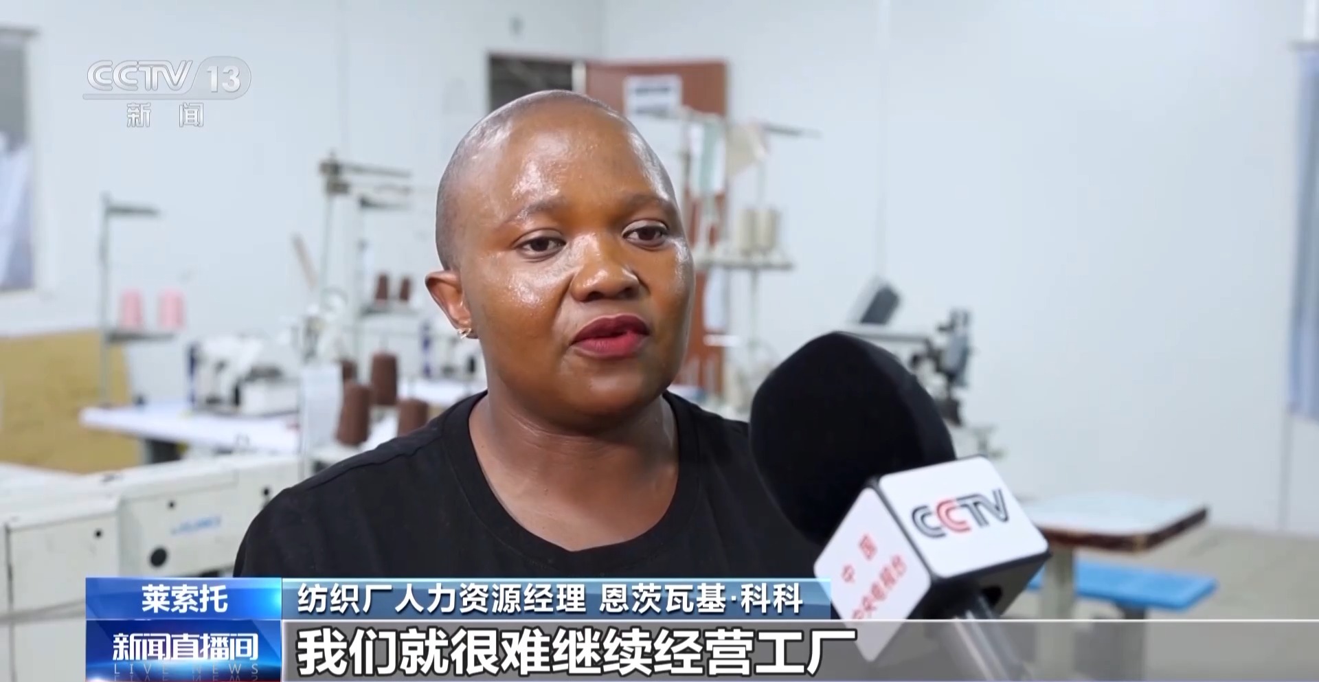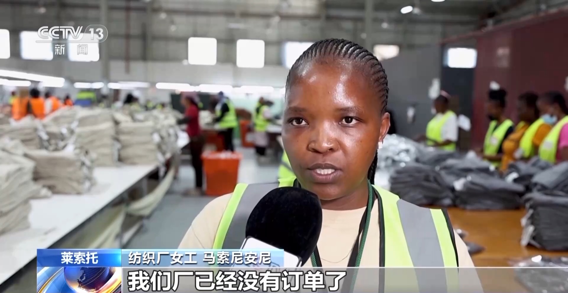 纺织厂女工马索尼安尼:因为美方高额关税,我们厂已经没有订单了。这些关税的上涨在经济和社会层面,都对我们造成了非常严重的冲击。我们非常担心,也非常沮丧,因为我们不知道,自己是在前进,还是在倒退。