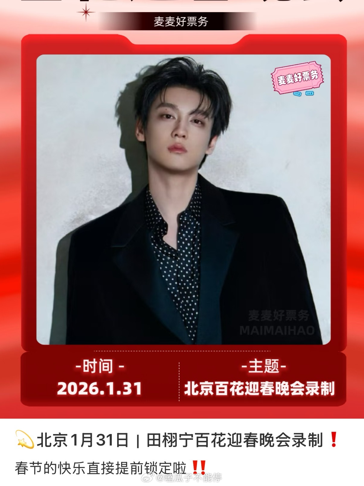 🍉田栩宁好像会录制百花迎春晚会