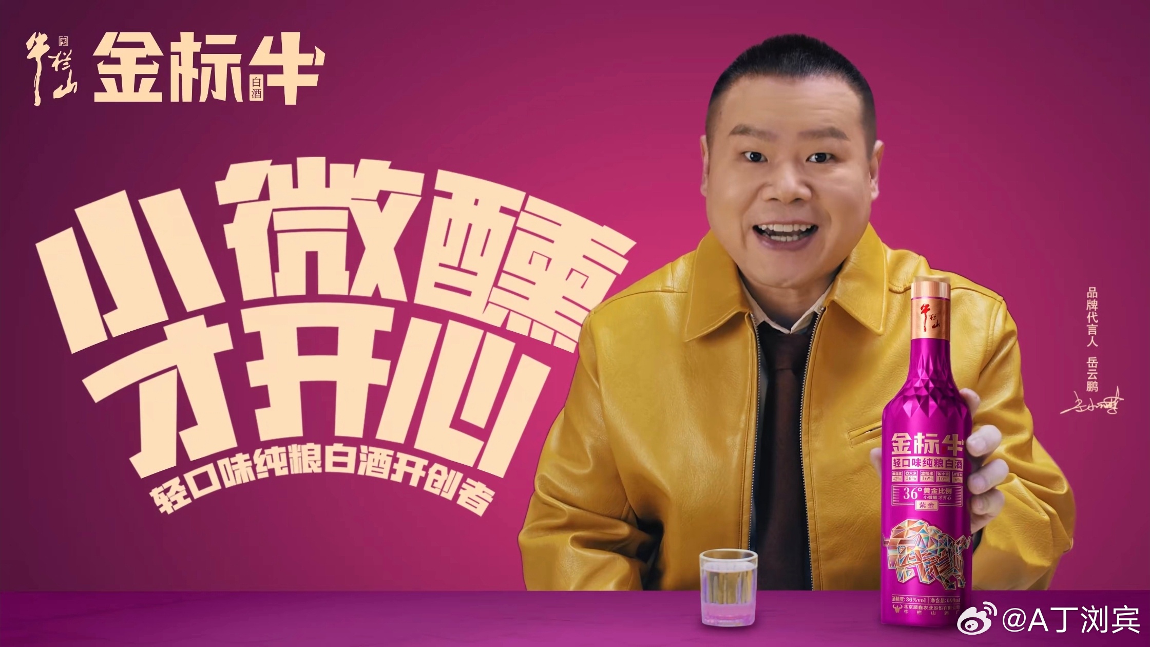 牛栏山品牌代言人岳云鹏岳微醺岳开心 岳云鹏官宣成为牛栏山金标牛代言人,一句“小微醺,才开心”直接戳中打工人的心坎儿!下班回家,从冰箱拿出冰镇金标牛,酒液清澈淡金,36度绵柔粮香裹挟着淡淡果香,纯饮一口,暖意从胃里开始升腾,头脑却依旧清醒。白天的烦躁瞬间消散,这就是专属的“下班结界”。朋友小聚,解锁“牛碧桶”特调:柠檬+冰块+金标牛+雪碧,气泡欢腾,碰杯间尽是烟火气。私藏创意喝法更惊喜:乌龙茶饮底的清爽、草莓汁调和的粉嫩、话梅温热的治愈,每一款都适配不同心情。不用烂醉,无需理由,一杯牛栏山金标牛,一点微醺感,就是最踏实的快乐。 无锡