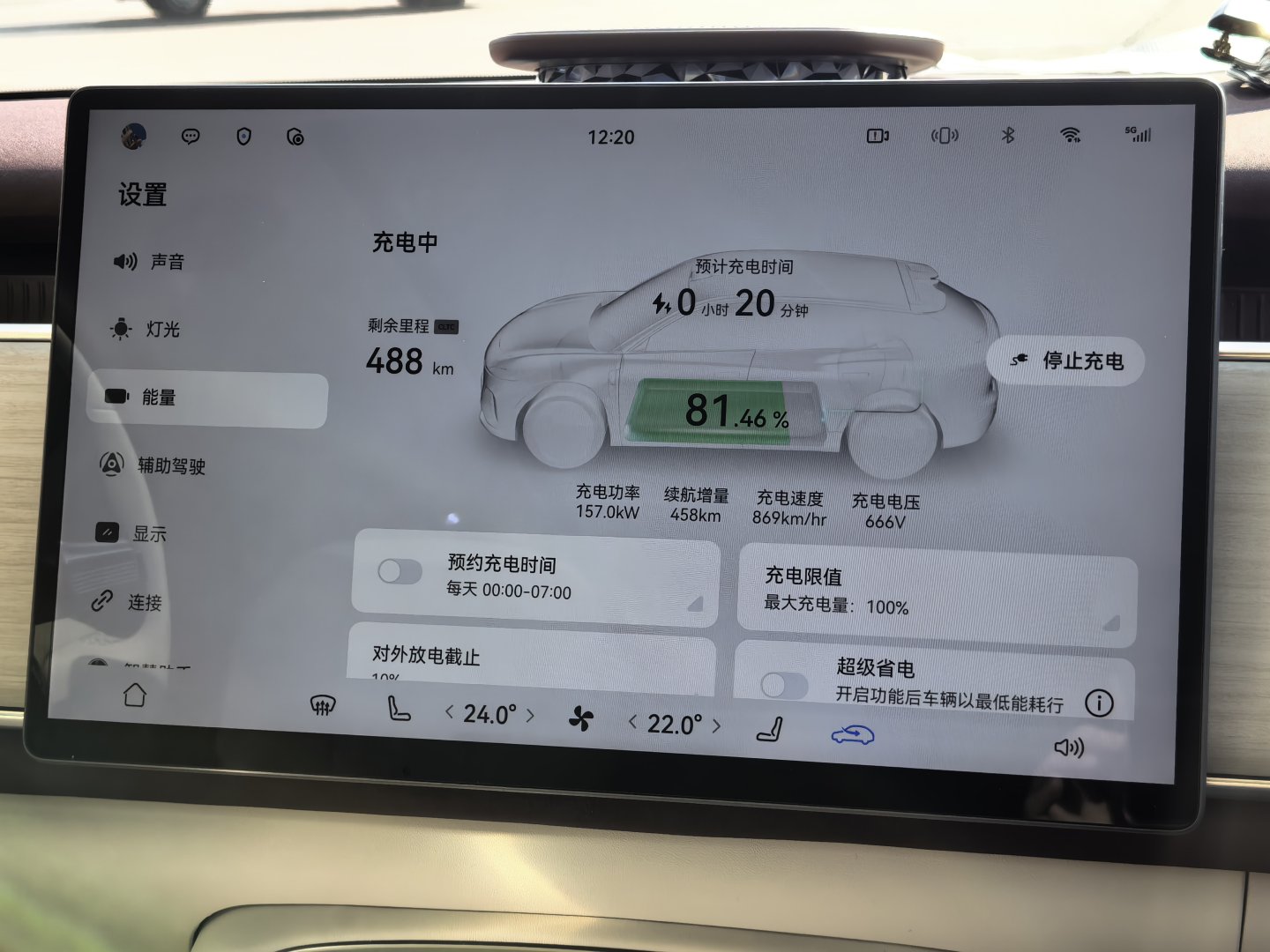 11.44 极限到达服务区11.48 开始充电12.20 充电81% 岚图知音在