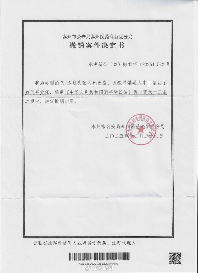 江苏泰州,一6旬老人携妻子过马路去吃饭,差点被一辆车给撞到。老人指责了司机几句,谁知司机竟下车对老人夫妇一顿殴打,期间老人因受到刺激倒在地上,而司机却骂骂咧咧的开车离开,并未对老人实施救助行为。后老人经抢救无效死亡,公安机关以司机涉嫌过失致人死亡罪将案件移交检察院,但在检察院退回补侦后,公安机关又车撤销了对司机的处罚,认为司机无罪。老人的儿子不服,提交了复议申请,要求必须治司机的罪。(来源:津云,红星新闻等) 据悉,62岁老人蒋某退休后在家闲不住,就到两个儿子开的公司帮忙。由于工作的性质,蒋某经常需要出差,而每次出差,他都会带着妻子一起,这样就可以一起走遍祖国的大好河山。 2024年7月15日,62岁的老人蒋某带着妻子去泰州出差,在办完公事后,蒋某找了家餐厅准备带妻子去吃饭。 当晚6点左右,蒋某和妻子行至一家医院附近,准备过马路到对面去。当时蒋某所处的位置不是路口,所以没有红绿灯,但有条斑马线。 蒋某牵着妻子的手走在斑马线上,可才走到一半,一辆私家车急速向二人驶来。 蒋某认为自己走在斑马线上,对方应该会礼让,可没想到对方就稍微减了减速度,然后直接从蒋某夫妇的面前开了过去,差点就撞到了蒋某夫妇。 蒋某当时气坏了,指着轿车司机骂了几句。谁知轿车司机朱某听到后,直接就把车停在了路中间,然后下车对着蒋某推搡了起来。 蒋某妻子见状,立即拉开蒋某,还劝说朱某不要动手,可朱某却不顾蒋某妻子的劝说,对着蒋某就踹了一脚,鞋子都踹飞了,可见力道之大。 紧接着,朱某捡起鞋子对着蒋某的妻子的头部就是一顿砸,把蒋某气得艰难爬了起来,准备和朱某拼命。 可就在双方争执过程中,蒋某因情绪激动突然倒在地上。朱某见状也害怕了,担心闹出人命,于是直接开车走了。 有路人看到蒋某倒地后,立即帮忙将蒋某送到了不远处的医院救治。当晚8点左右,蒋某经抢救无效死亡。 经鉴定,蒋某的死因是急性心肌梗死,朱某的刺激行为是导致蒋某死亡的诱因。此外,蒋某妻子的伤情达到了轻微伤的程度。 7月16日,公安机关以朱某涉嫌过失致人死亡罪移交给检察院审查起诉。但检察院审查后,认为现有证据不足以证明朱某的行为构成犯罪,所以要求公安机关补充证据。 可没想到,2025年12月26日,公安机关竟作出了撤案决定。蒋某的家人在2026年1月1日收到了撤案决定书,但该决定书只显示了朱某不负刑事责任,具体什么原因并未说明。 2026年1月5日,蒋某的儿子蒋先生申请了行政复议,要求公安机关恢复侦查,重新移送起诉。 同时,蒋先生质疑公安机关在检察院要求补侦期间作出撤案决定的程序违法,要求公安机关给出合理解释。 《公安机关办理刑事案件程序规定》第296条规定,对人民检察院退回补充侦查的案件,根据不同情况,报县级以上公安机关负责人批准,分别作如下处理: (三)发现原认定的犯罪事实有重大变化,不应当追究刑事责任的,应当撤销案件或者对犯罪嫌疑人终止侦查,并将有关情况通知退查的人民检察院。 由此可见,公安机关在案件退回补侦期间,是有权依据案件情况作出撤案处理,所以公安机关在程序上并没有违法。 那朱某的行为该如何定性? 过失致人死亡罪,是指行为人应当预见自己的行为可能造成他人死亡的结果,由于疏忽大意而没有预见,以致造成他人死亡,或者行为人已经预见到其行为可能会造成他人死亡的结果,但由于轻信能够避免以致造成他人死亡。 如果行为人主观上没有过失,而是由于其他无法预见的原因导致他人死亡的,属于意外事件,行为人不负任何刑事责任。 本案中,朱某明知蒋某年龄大了,且明明看到蒋某倒地不起,却不管不顾,直接离开了现场,放任了蒋某的死亡。 虽然朱某可能并不知道蒋某有一些基础疾病,但根据鉴定结果,蒋某的死因与朱某的刺激有关,所以朱某的行为符合过失致人死亡罪的构成要件。 当然,如果警方经过调查后认为朱某的行为尚不构成过失致人死亡罪,但朱某卡车不礼让在斑马线上的行人本就存在过错,之后又殴打蒋某夫妇,致蒋某突发心梗死亡,致蒋某的妻子,朱某的行为已经涉嫌寻衅滋事罪。 目前,公安机关仅仅是撤回了案件,也已经将撤案决定书交给了蒋先生,但未说明为何朱某的行为不构成犯罪,这侵犯了蒋先生等人的知情权,希望警方能作出合理的解释。 对此,您怎么看?欢迎留言交流。