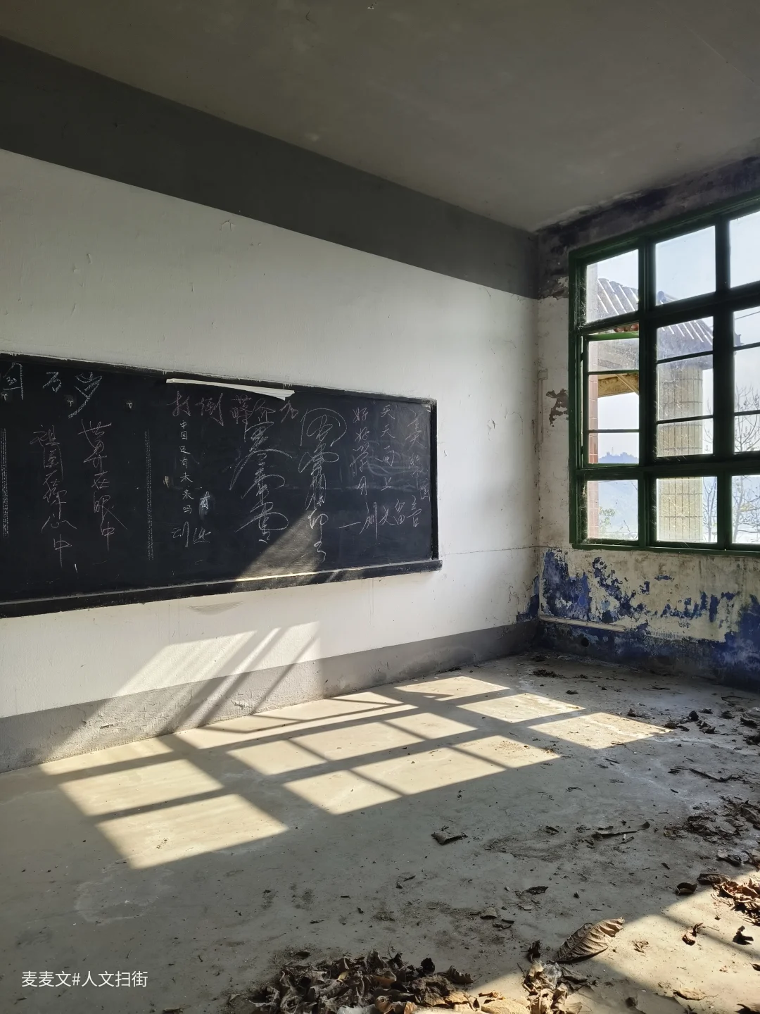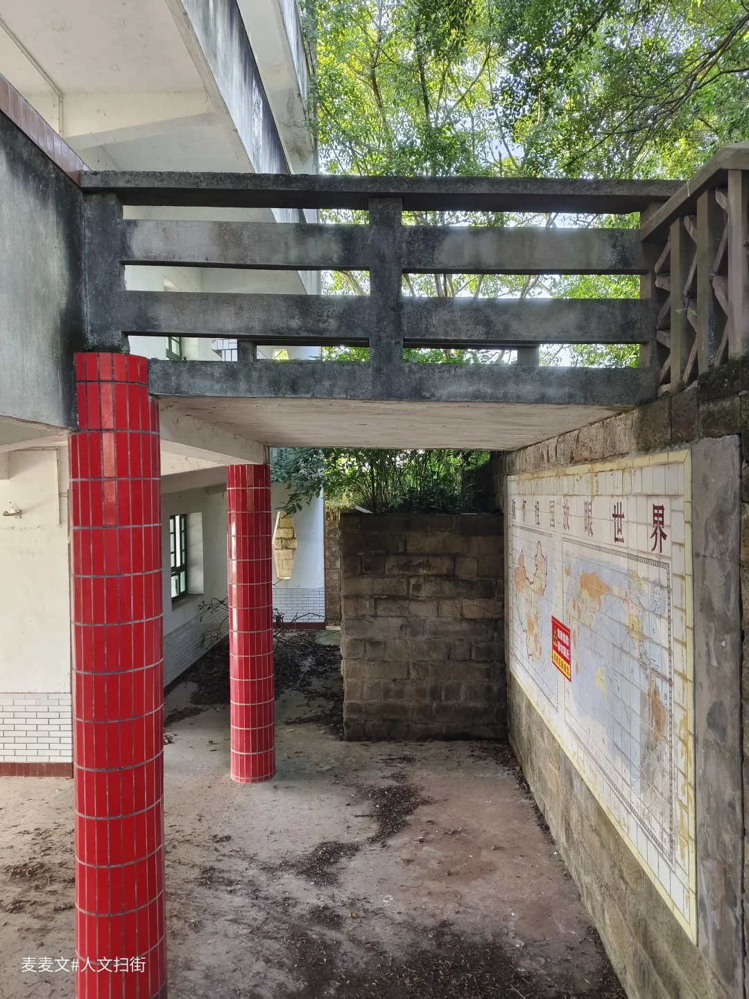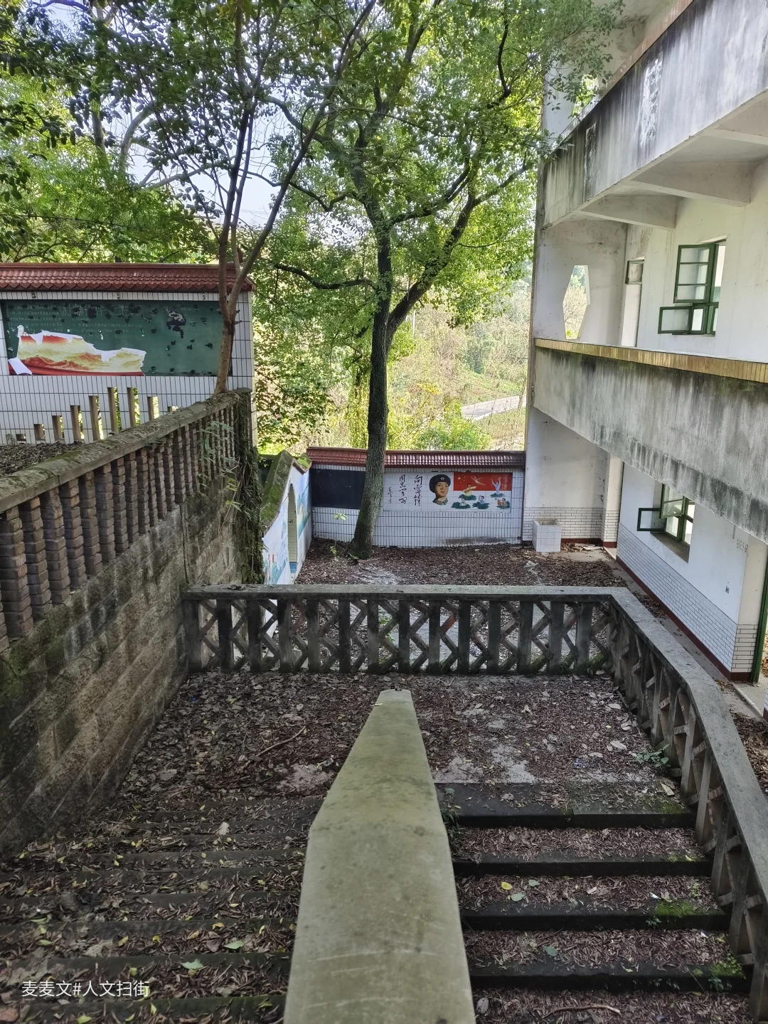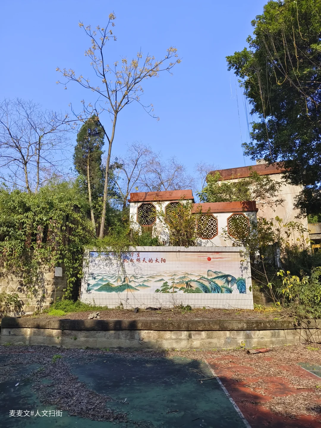 狮子口小学,位于重庆市两江新区(北碚区)水土街道狮子口村,早没了琅琅书声。据资料记载,校址原本是清乾隆年间的万寿宫会馆,1999年改建办学,后来因资源整合停办,如今只留满院荒草与旧迹。 学校瓷砖画里的卡通形象还鲜活,时代标语依旧醒目,教室的绿框窗、黑板上的涂鸦,都定格着往日的校园时光。红砖墙爬满藤蔓,地砖上的光影斑驳,曾经的操场、教学楼,如今被草木淹没。 曾经的百年古建筑会馆与千禧年建筑风格乡村希望小学的叠合,在重庆嘉陵江边凝成一段被遗忘的岁月。踩在落叶上的声响,像极了远去的下课铃。