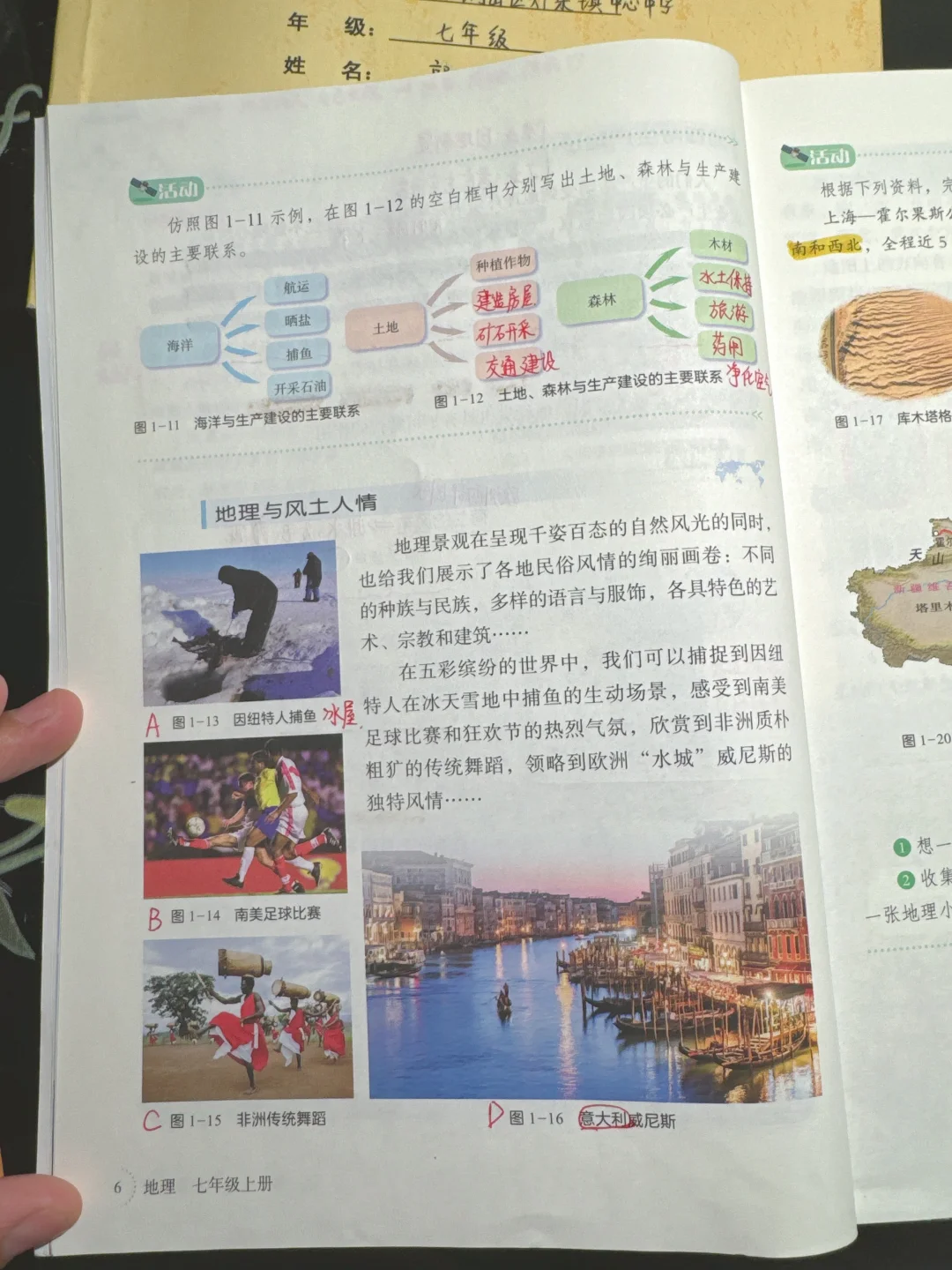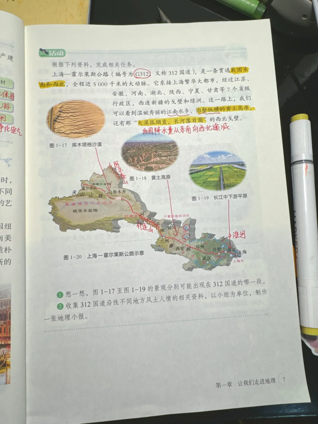 有很多小伙伴私信我,为什么还不更新笔记📝。我9月1号拿到书,今年带了班主任,新初一学生报道,都挤到一起,很忙,一整天没闲着,步数都突破20000步了。 新旧教材的不同:藏袍和阿拉伯白色长袍,这都是一个小重点。后面活动题312国道,提前渗透知识,让学生兴趣度提高,找一个最美国道312可以放放。