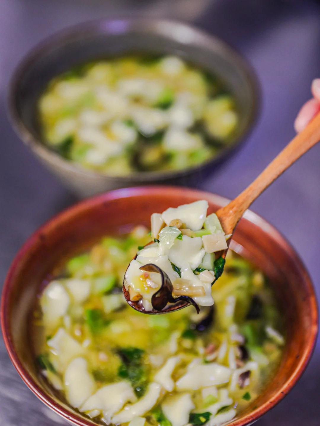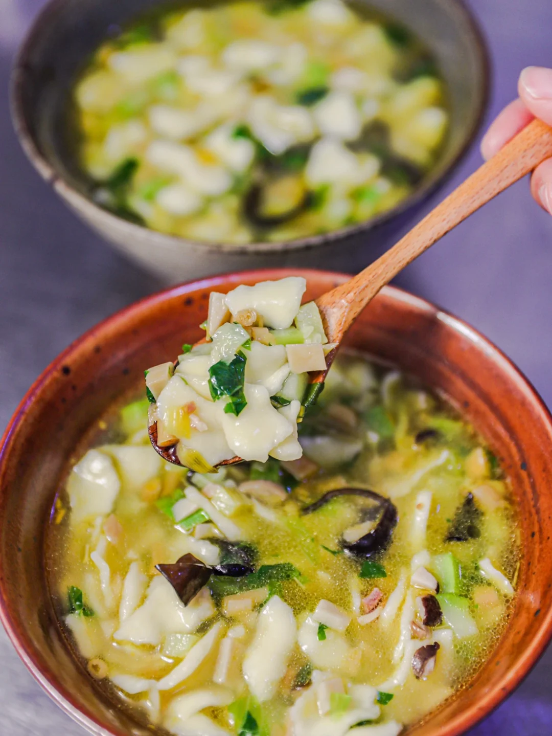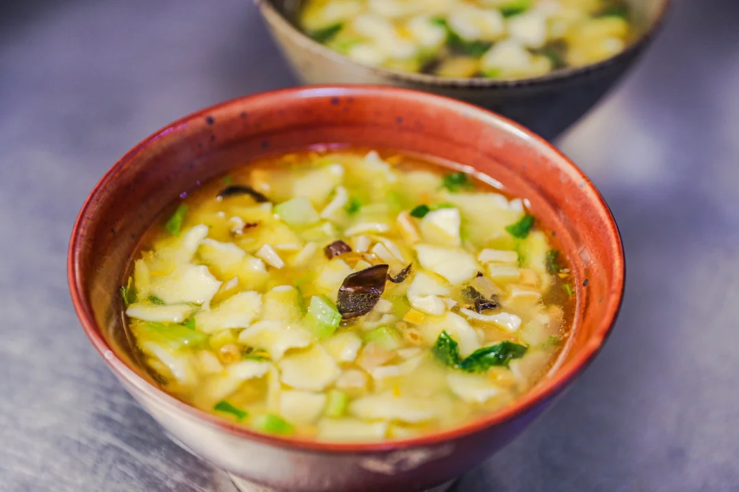 ✨关于汤头,翻阅资料有很多种,在当地最常见的可能都是用高汤打底,放入肉末,韭菜以及其它喜欢的蔬菜,放入揪好的面片。