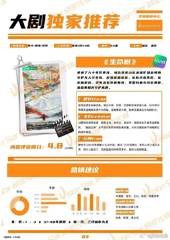 杨紫、胡歌主演《生命树》招商海报