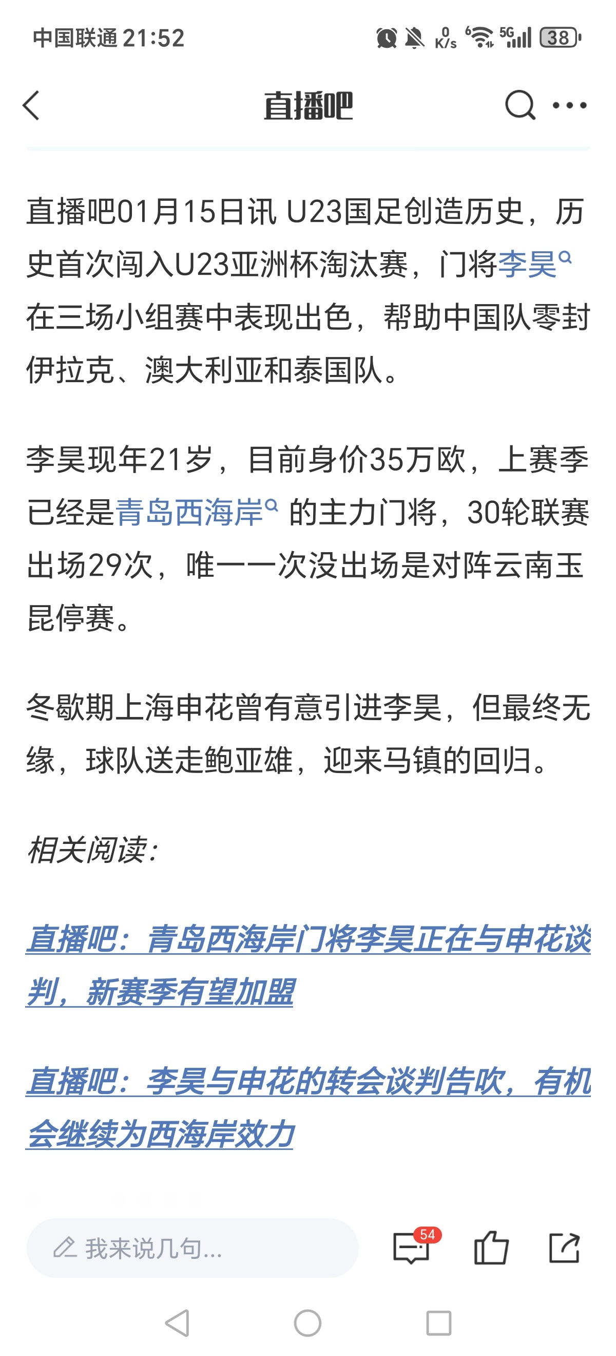 一场U23亚洲杯,让李昊身价再飙升!U23亚洲杯对阵伊拉克,李昊神级的发挥,上