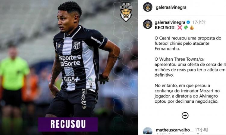 武汉三镇队外援引进动态! ESPN消息:武汉三镇队有意葡甲维塞乌队28岁巴西前锋