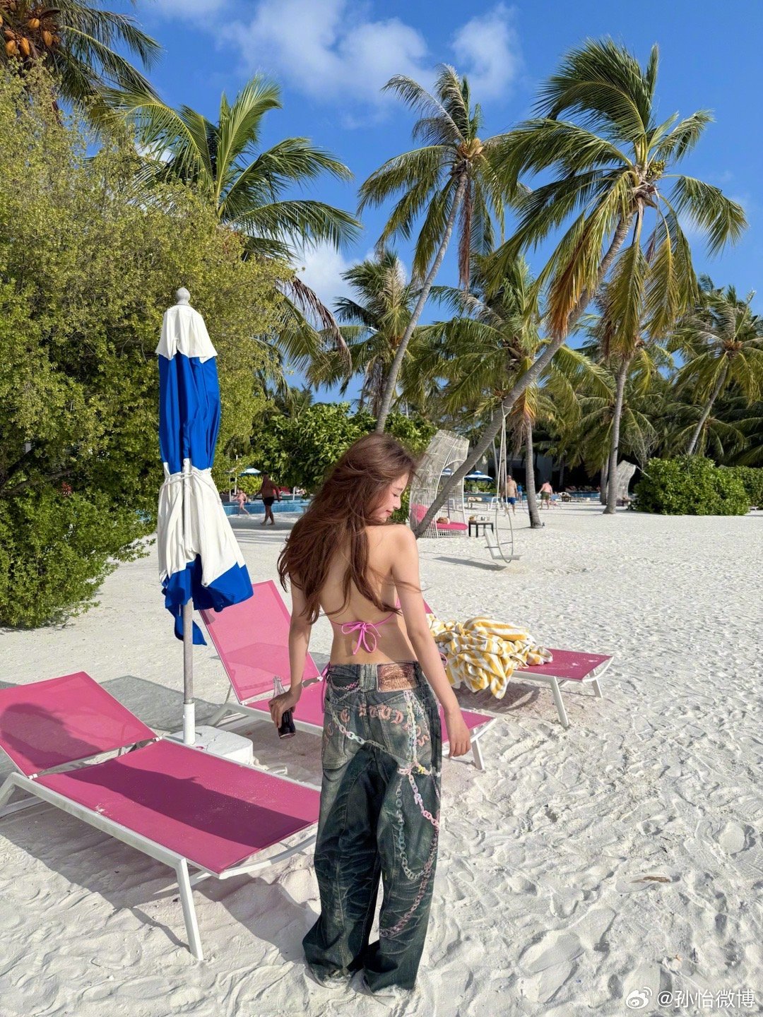 孙怡马尔代夫度假照孙怡度假照 明媚灿烂的🐚⛱️