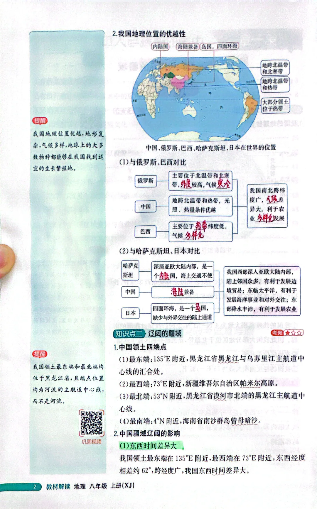 湘教版初中地理八上教材讲解——中国的疆域