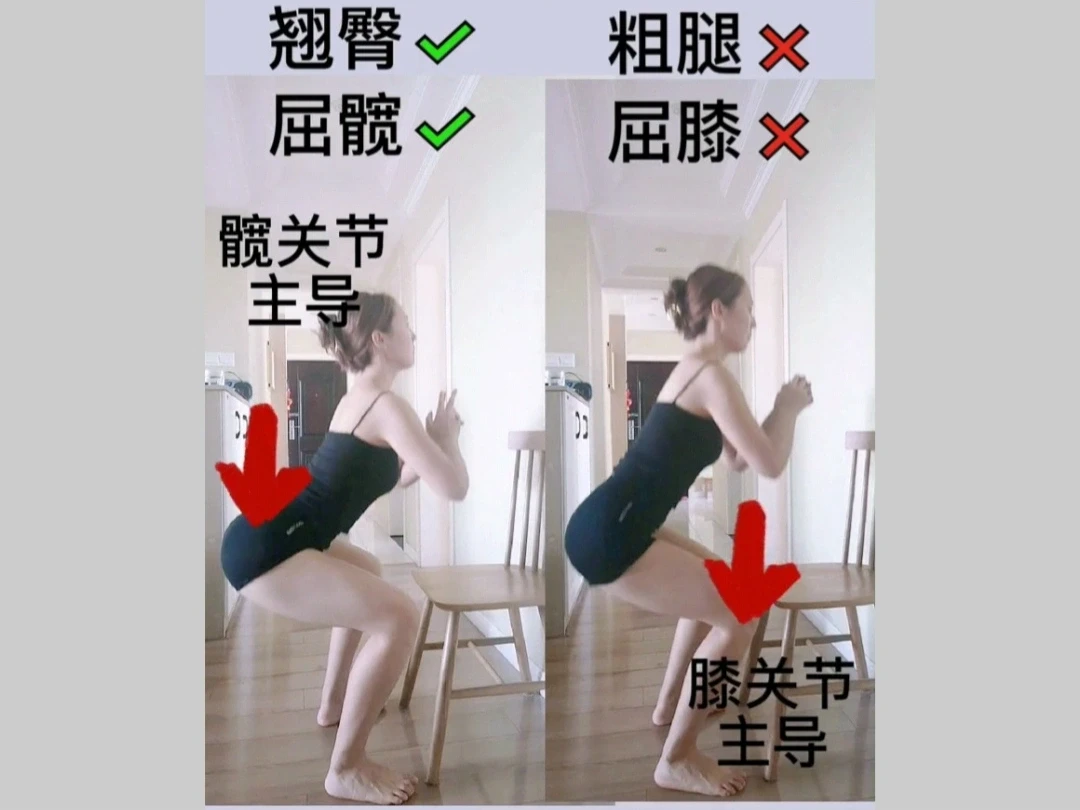 学会屈髋用臀发力而不是用腿发力绝对占到所有翘腿不粗腿运动的80%❗️怎么屈髋见图4⃣(总结一句话:想象身后有个板凳,感受pp往后坐板凳的感觉)